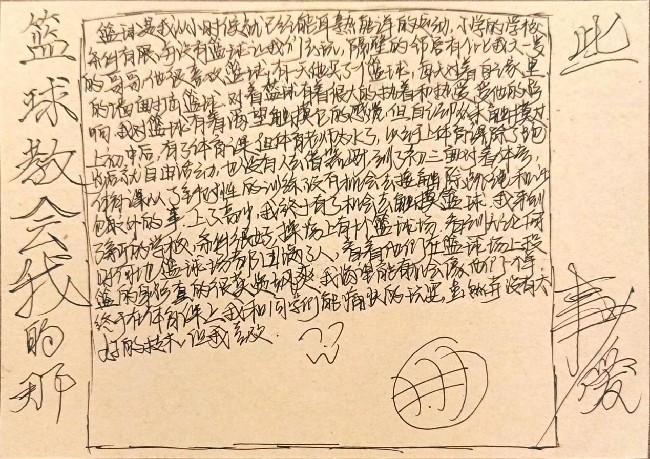2015年,是一个特别年份,这一年我第一次正式接触到篮球这项运动,这一年我遇到了这项运动里我人生的第一位篮球教练——常教练,也遇到了志同道合,一起并肩作战的队友们。在训练中,我们并没有因条件艰苦放弃、也没有因意见相左不欢而散,相反,篮球所散发出来的精神,促使我们积极向上且富有正能量。当我困惑迷茫不知所措的时候,我会选择打球来排遣心中压抑的情绪,每投进一球,自豪与自信就会涌现,疲惫和阴霾便会消散,此时我便会渐渐忘记其它事,专注的投球、捡球、上篮……