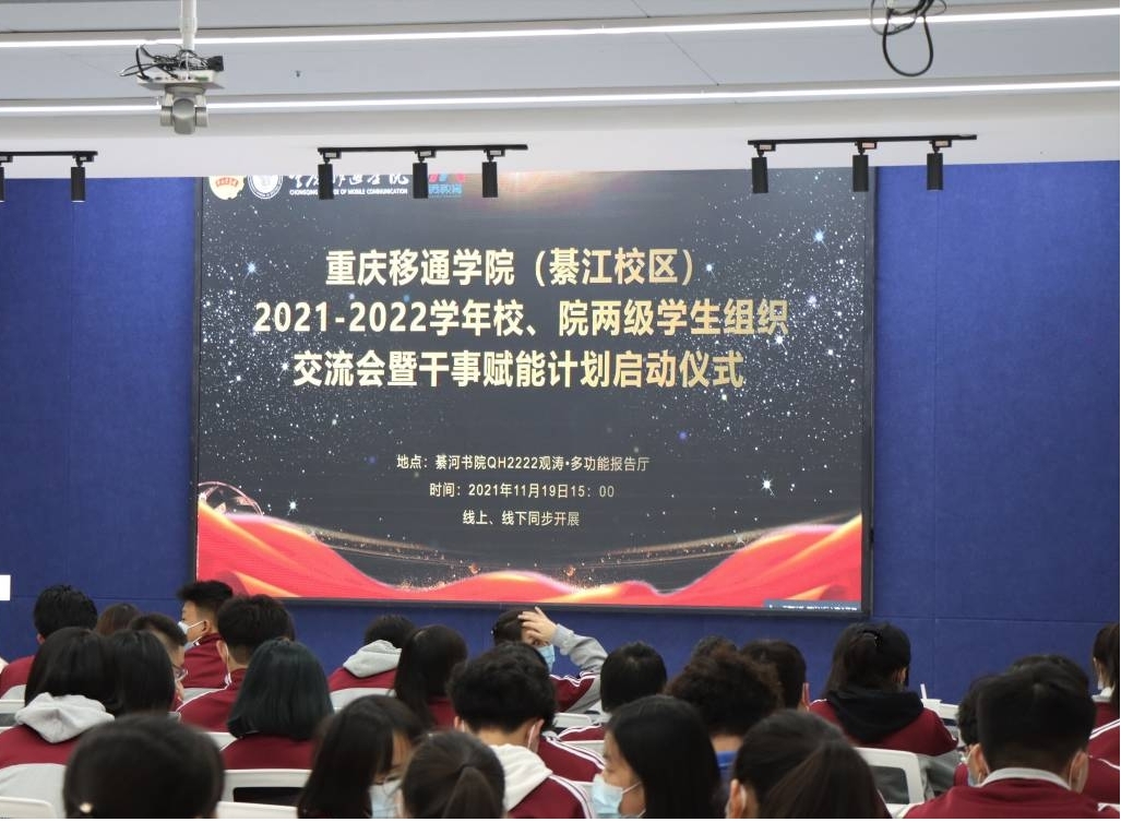为给全校学生搭建更好的成长实践平台,提高綦江校区校、院两级学生组织的影响力,增强双校区校、院两级学生团队交流,进一步发挥好桥梁纽带作用,提升学生组织的整体素养。2021年11月19日,重庆移通学院綦江校区举办2021-2022学年校、院两级学生组织交流会暨干事赋能计划启动仪式,莅临本次大会的有大数据与软件学院学工办主任阙小梅老师,淬炼·国际商学院学工办主任尹金维老师,通信与信息工程学院&信息安全学院学工办主任周俊老师,綦河书院综合办主任卢柯毓老师,以及校团委老师们、各学院辅导员们。