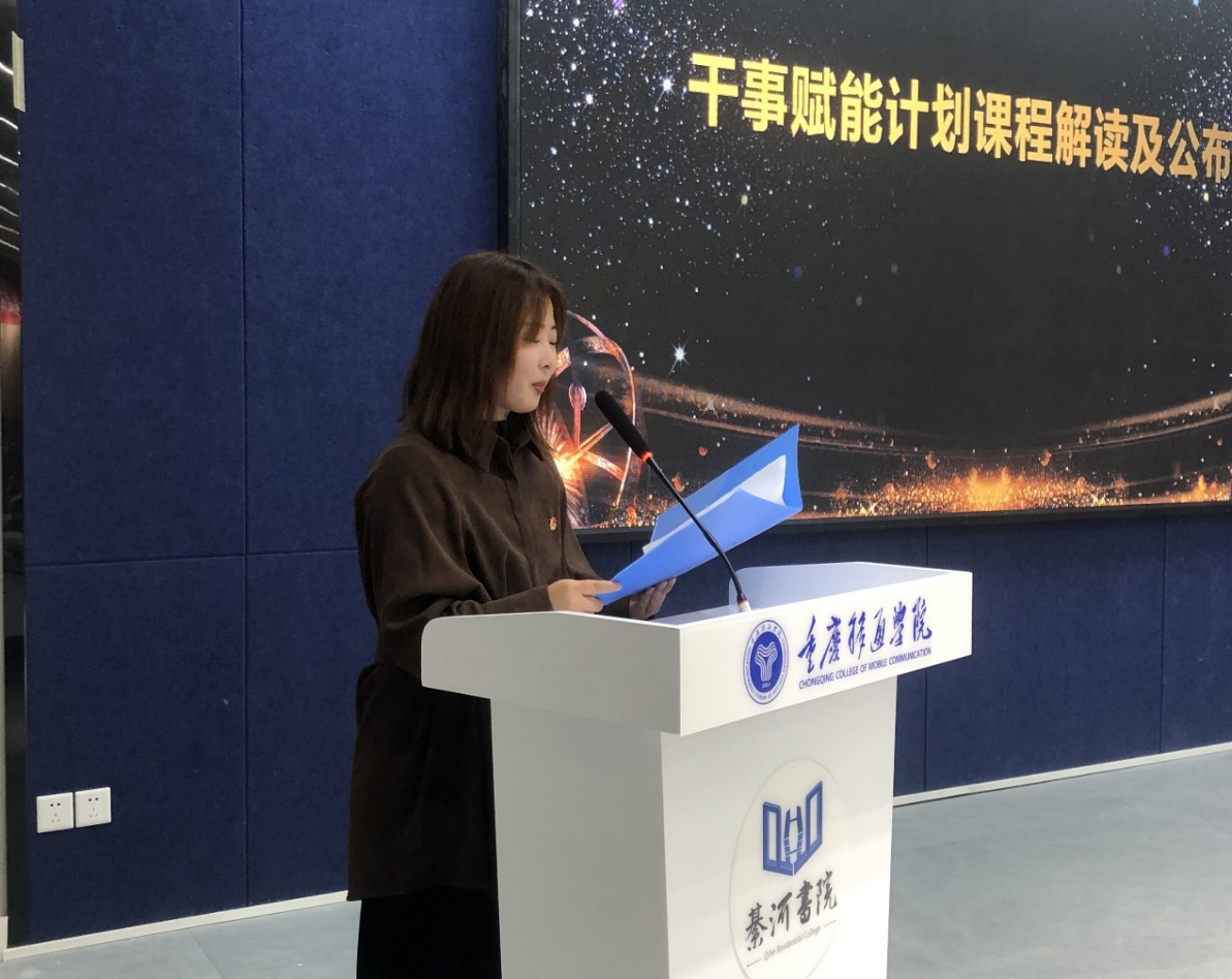 大数据与软件学院学工办主任阙小梅老师介绍校、院学生组织架构,并公布2021-2022学年校、院两级学生组织干事名单。在新征程的起航之路上,綦江校区的新星正逐渐闪耀,未来“綦”迹无限。