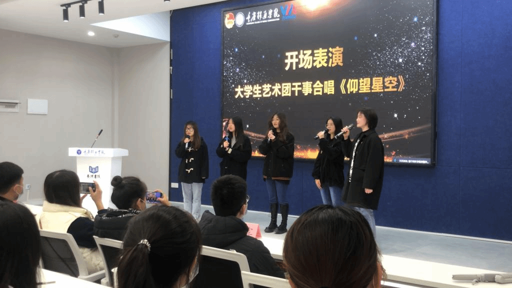 在时序轮替中,始终不变的是奋斗者的身姿;历史坐标上,始终清晰的是奋斗者的步伐。仪式伊始,大学生艺术团干事代表合唱《仰望星空》,就像他们所唱的一样:“这一天,我开始仰望星空发现,星并不远梦并不远,只要你踮起脚尖”,在綦江校区初建伊始,校、院两级学生组织全体干事正如繁星点点,在移通璀璨星河中发出自己的光亮,为学校、为完满教育贡献自己的力量,同时收获属于自己的成长,承接新的期望,扬帆正起航。