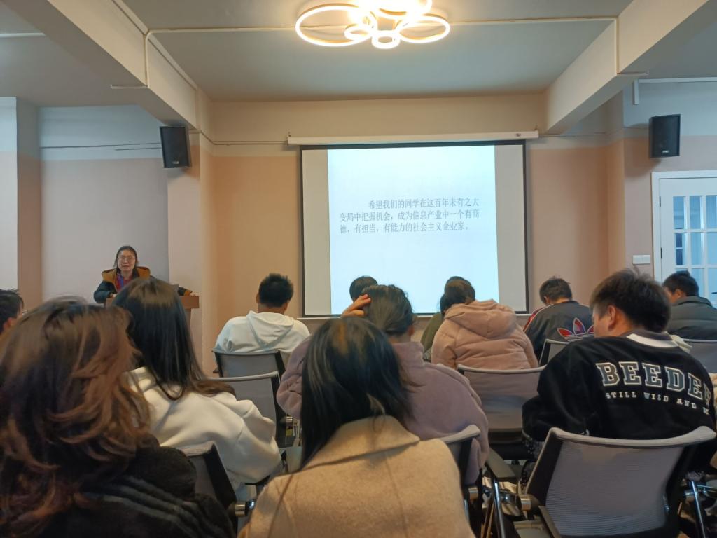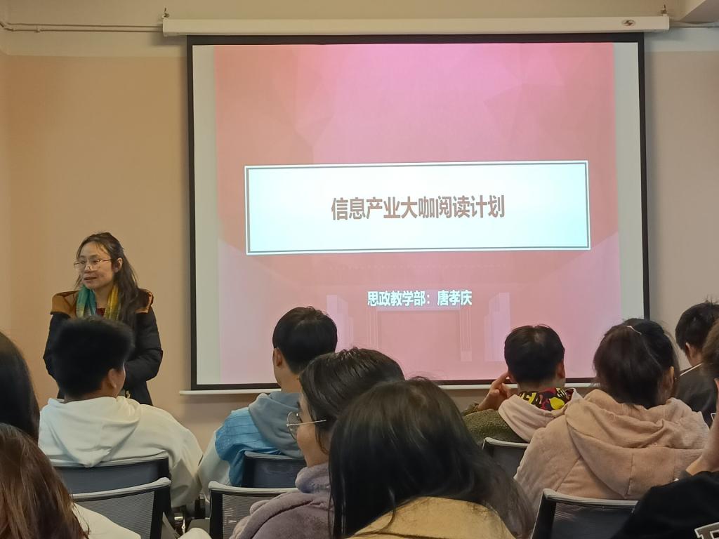 参加此次活动的老师还有思政教学组的柴平老师、宋丹老师、卫峥妮老师。在活动中,唐孝庆老师为我们讲解了读书的益处,并在班级启动了“信息产业大咖阅读计划”,规定了这一年的必看书目。
