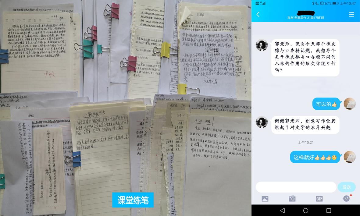 有同学说:“创意写作课真的打开了我的思维,老师出的教学接地气,贴近我们的生活,像我这样文学基础差的同学也能学着去创造很多鬼点子了。”