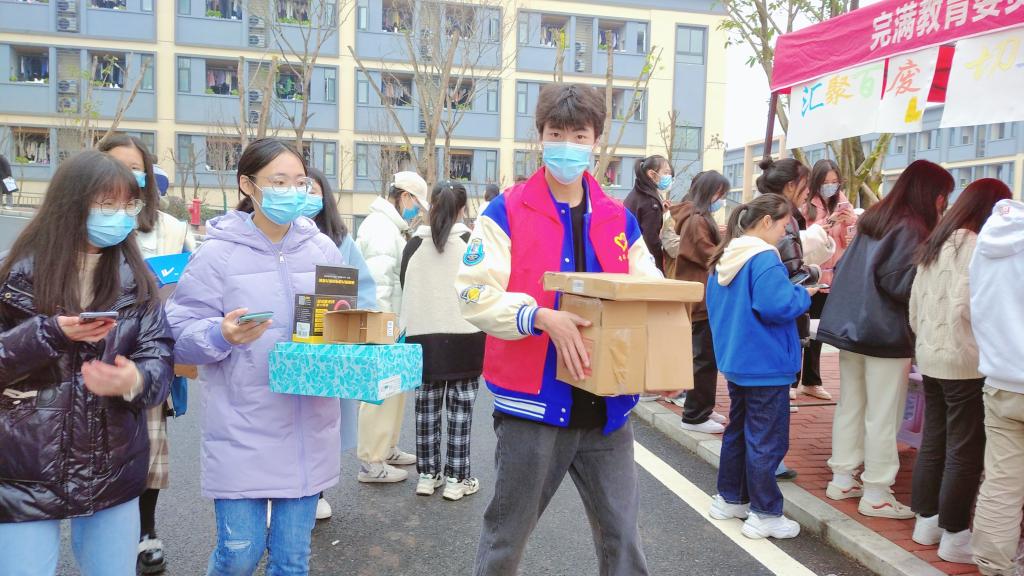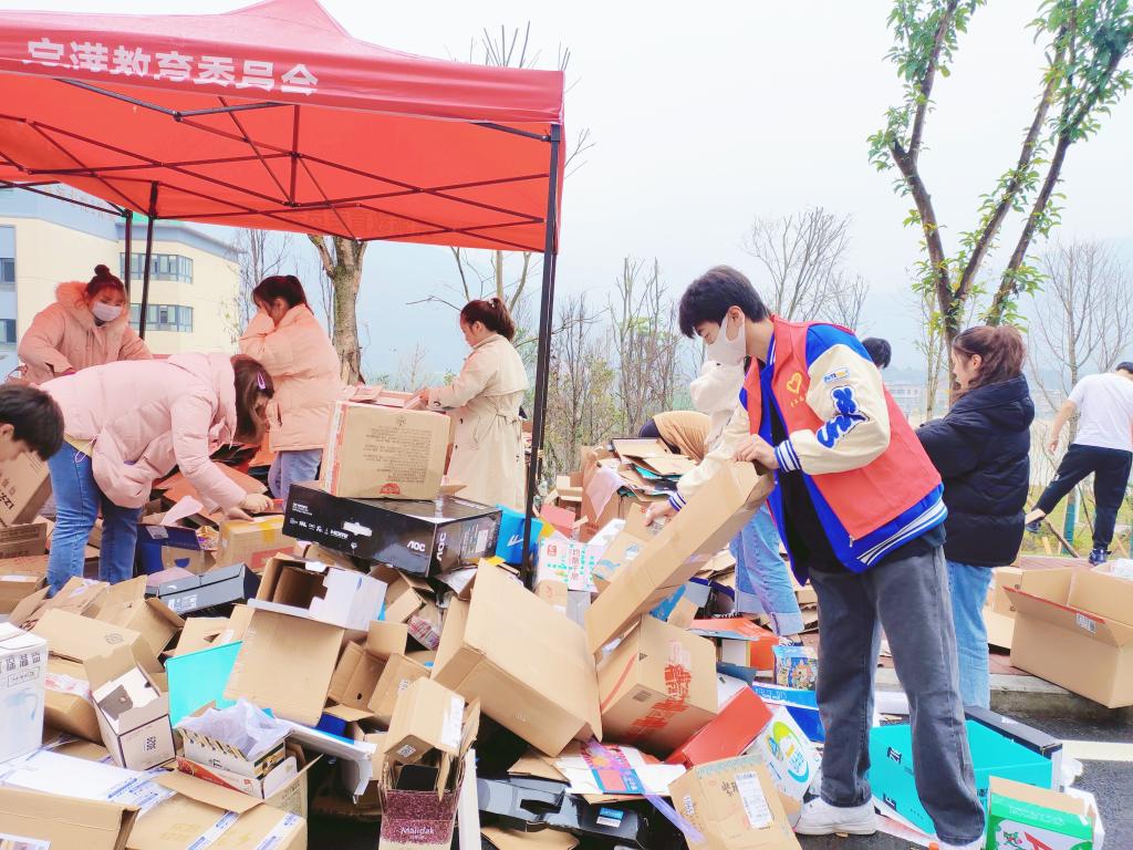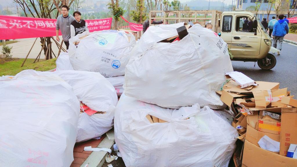 志愿服务来引导,废纸回收变成宝。根据数据显示,本次活动一共吸引了1174名同学参与并获得了大量的五星好评。仅仅五个小时的时间,两个志愿服务站点共回收了4500余个纸箱、800余个矿泉水瓶,总重量累计超过550千克。本次活动不仅提高了全校同学的环保意识,更打造了全员环保、助力公益的的校园氛围。