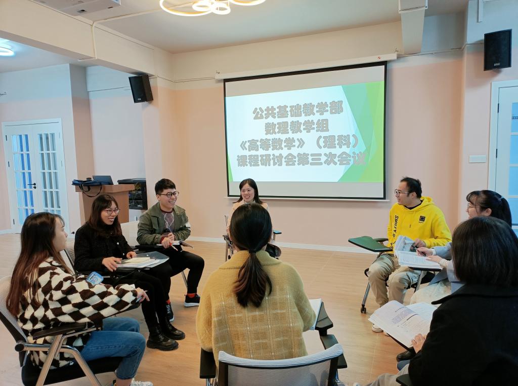 针对学习对象不同,会议对理工类和工商管理类课程进行了分组讨论。边梦柯老师和叶彩虹老师就未来两周《高等数学》教学重难点,为全体教师提供了明确思路,给出了一些见解,征集各位教师意见,碰撞出不同的思想火花,为学生打好数学基础做好准备。在不断地探讨过程中,提出了具有参考价值的教学方法。