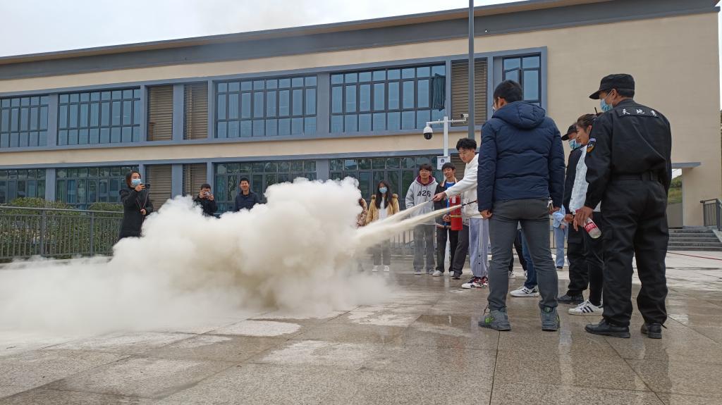 随后,池队长在演练区点起“熊熊大火”。望着那红色的火蛇跳动,同学们的手里的灭火器又仿佛沉重了许多,大家提起灭火器在专业人员的指导下精准的喷射出干粉,同学们踊跃参加在实践中学习消防知识。演练区烟雾四起犹如守护的屏障一般牢牢的护住我们的校园安全。刘老师分享到,希望同学们可以通过今天的学习,在危险真正来临时,我们在确保自身安全的情况下尽力利用自身的知识和力量将火灾掐灭于初期。为守护安全校园出一份力。