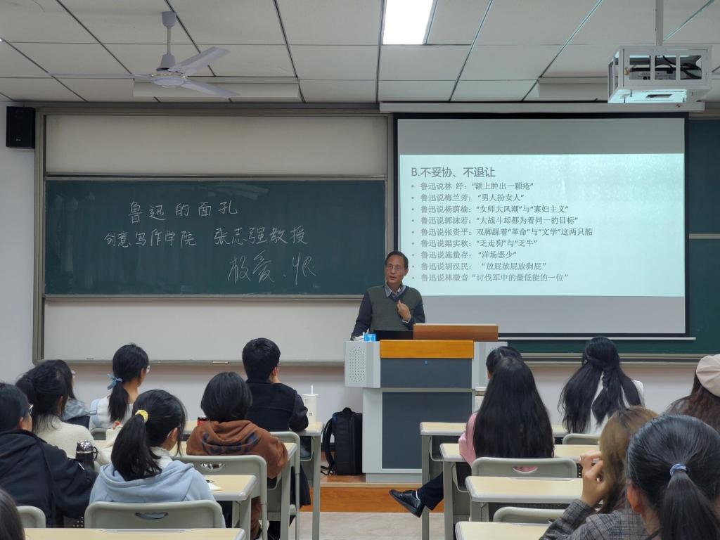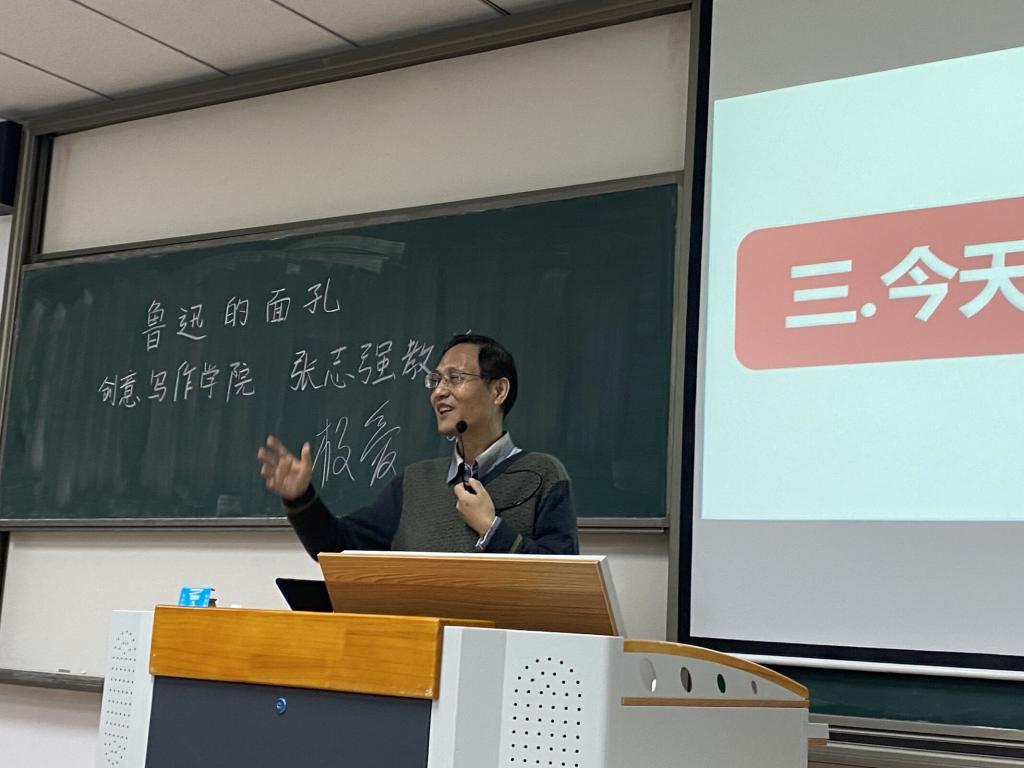 从《狂人日记》在新文化运动中的地位,到《故事新编》的解构与颠覆,再到为自己而作的《野草》,张教授深入剖析鲁迅不同时期、不同目的的创作,指引大家要从哪些角度去理解鲁迅先生的作品、领会作品中的精神力量,同学们听得聚精会神、如痴如醉,被张教授的一言一语时刻牵动着内心。
