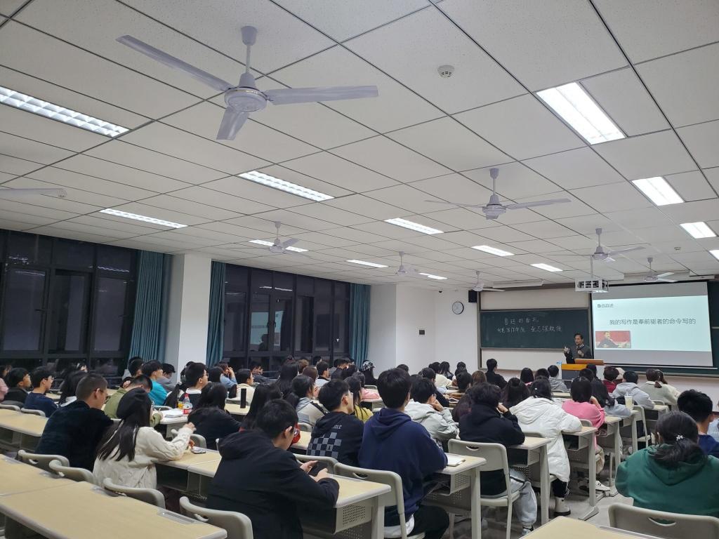 11月3日晚,仁者楼303教室座无虚席,120余名来自2021届作家班和綦迹创意文学社的同学,跟着创意写作学院的张志强教授一道,饱含敬意地朗诵起一首家喻户晓的诗歌:《有的人》。