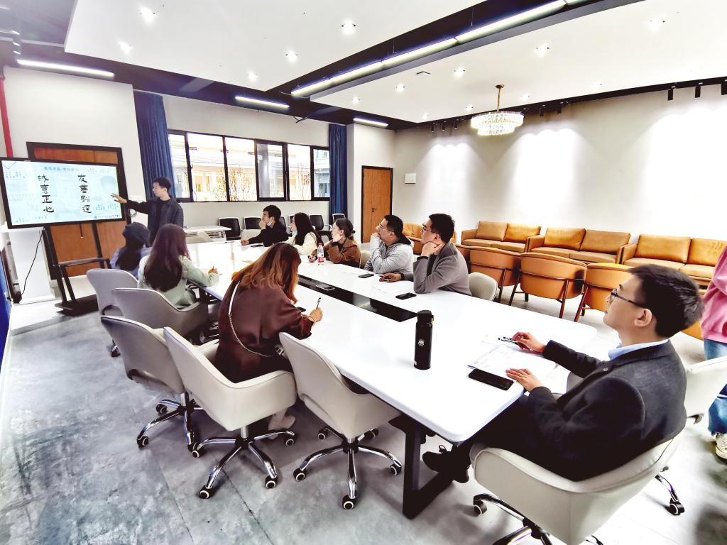 参观完毕后,老师们在綦河书院二号楼励行·会客厅进行了关于书院未来建设的座谈会。綦河书院的卢柯毓老师向合川校区的老师们进行了綦河书院文化解读,并表明了书院未来将围绕故事力,着重发展学生在情感沟通、故事传递方面的能力。