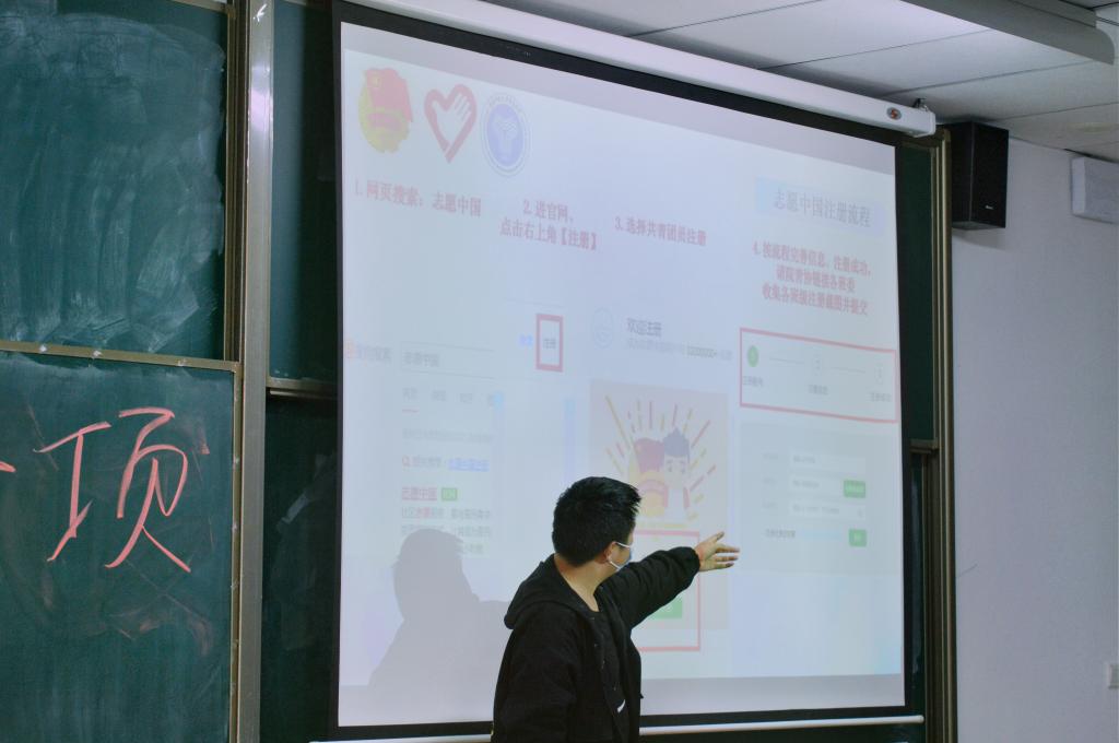 校团委青年志愿者协会刘云贺同学为各支队临时负责人讲解了志愿者注册、志愿汇APP注册、公益三小时活动发布流程,激励同学们将志愿服务活动做好做优。同时各支队也要注意团队内部建设、支队与支队之间、支队与总队之间保持良好的团队交流,互帮互助,形成良性竞争,激励志愿者们努力发光发热。