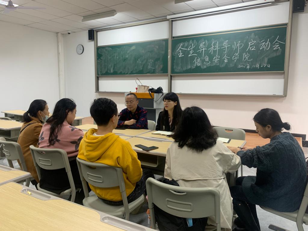 最后,信息安全学院异科导师联络员郑慧娟老师介绍了自己及对接的工作内容,以后老师们在异科导师工作过程中有问题可以及时反馈,加强沟通交流。会后也把各班班长与学委的联系方式分享到联络群方便导师们联系班干部了解班级情况和开展工作。