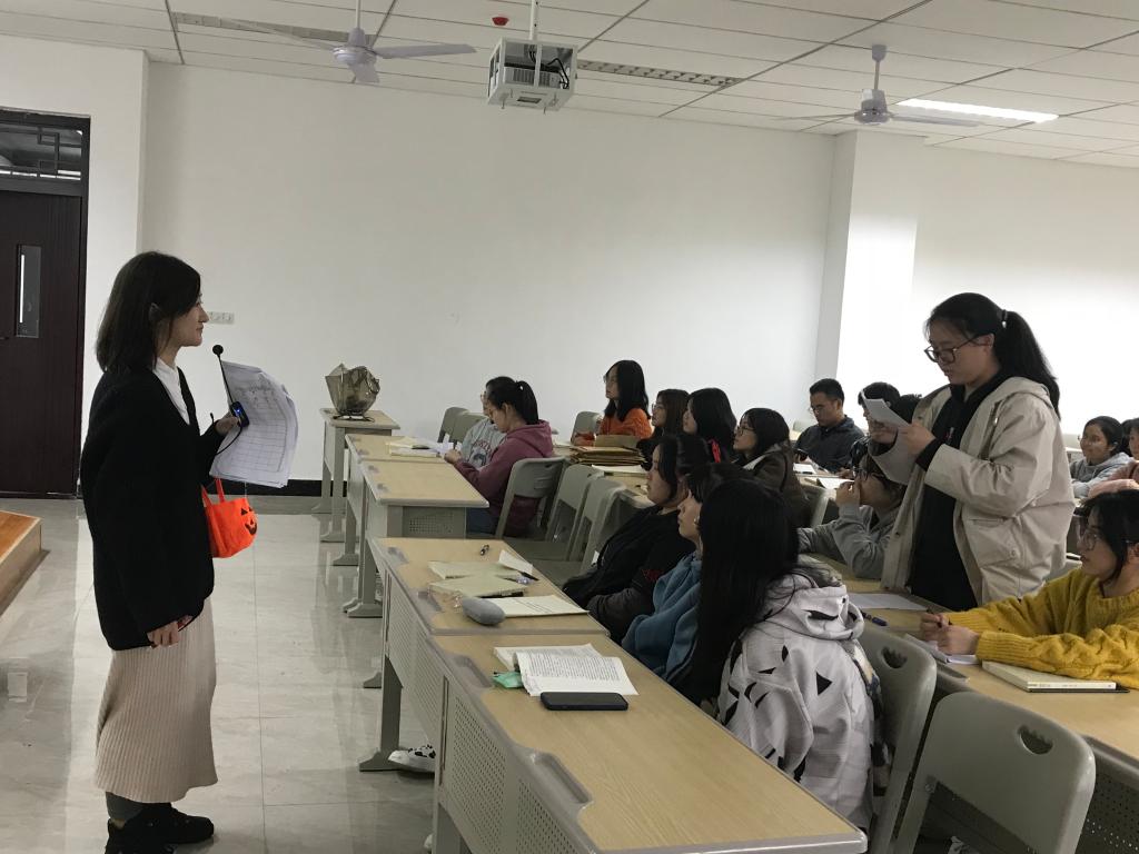 10月26日下午,綦江校区仁者楼,创意写作学院的刘聪慧老师给学子们上了一堂生动的创意写作课。笔者有幸在现场观摩了刘聪慧老师的行课过程,深感震撼。“创意写作”是强调创意的课程,除了写作本身应该具备的创意元素,还需在课程设计、课堂设计、课外作业等各方面体现出“创意”二字,缺乏“创意”的教师,怎么能向学子们传授与“创意”有关的写作知识呢?刘聪慧老师的课程设计和课堂设计脑洞大开,充满惊喜,学子们被她的“创意”牵引着往前走,整个课堂变成“创意”和“智慧”的舞台,教师与学子的智慧相互碰撞,灵感相互激发,完成一堂生动活泼的创意写作课。