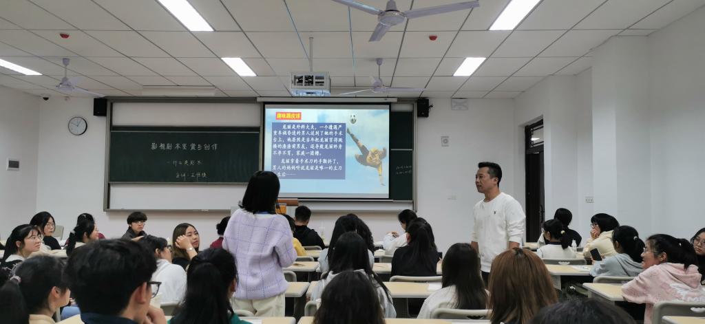这样的开场白,让第一次参加32课时研讨课《影视剧本鉴赏与创作》的60名同学,都笑了。这个吹牛的创意写作学院王恒绩老师接着又吹:“我上课有个特点,不管我带的哪一门课,我都会追求极致的快乐,我都有本事带着同学们一起嗨,一起飞,让大家爱上这门课。怎么,你们不信?不信的话,那好,王老师正式开吹了。”他大喊一声:上课!