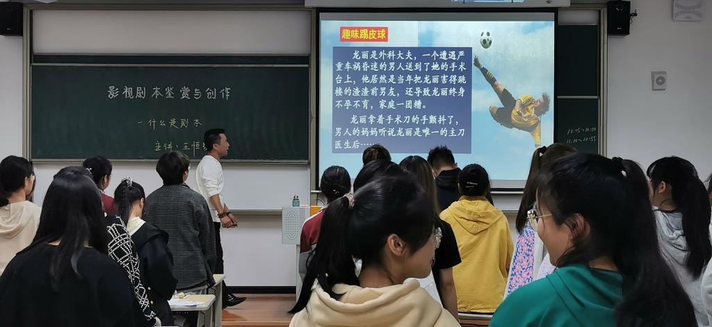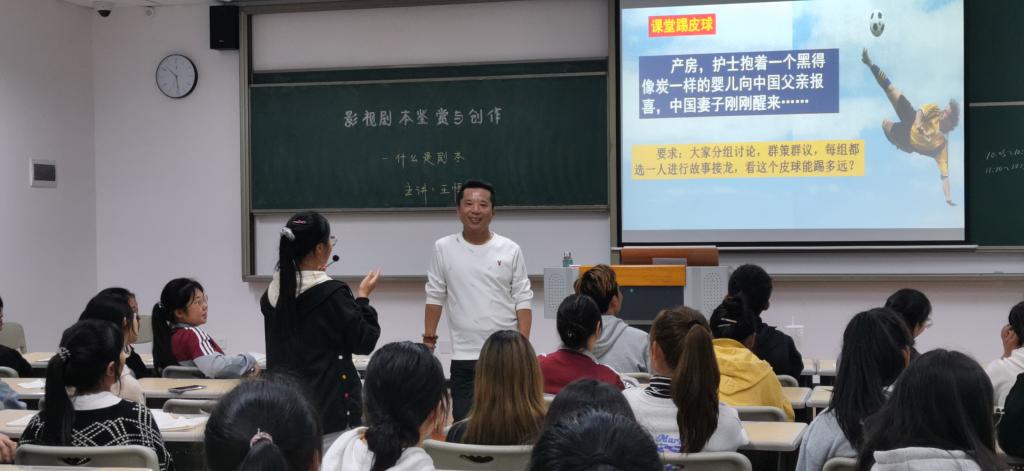 从王老师的个人简介中看到,他当过十多年的影视编剧,很多作品都有播出,还拿过很多国家及省市奖。他来讲《影视剧本鉴赏与创作》,正好有的放矢,对症下药。
