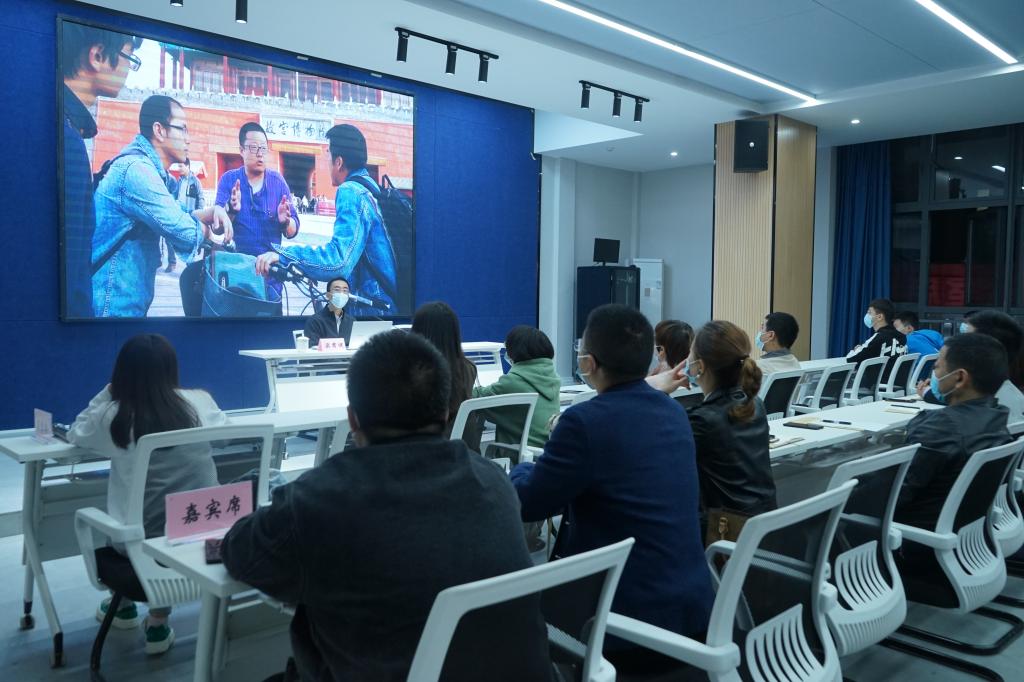梁君健教授举纪录片《我在故宫修文物》为例,带领打开师生文化传承的大门,同时给师生分享纪录片《大学》的创作过程,该片主要记录清华大学新生与博士生的日常生活、学习和理想,该片通过记录两位主人公如何逐步实现自己梦想,在大学追梦、逐梦、筑梦的过程,以及大学的美好时光与回忆的故事。梁君健教授通过自己做纪录片的有趣经历,带动现场气氛,以轻松愉快的氛围向师生介绍本次讲座第一部分“文化题材纪录片的创作与传播”,生动有趣对文化传承故事做出分享,让在场师生沉浸其中。