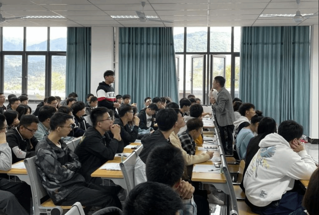 随后,特邀嘉宾邹健老师带来的就业指导演讲将此次年级会推入了高潮。邹健老师对于如何有意义地度过大学四年作了详细的分享。他认为,在大一阶段,同学们的学业比较轻松,应主动去做一些有益于自身发展的事,例如积极参加社团活动锻炼自己的综合能力;在大二阶段,学业相对较繁忙,应把重心放到学习专业课上,努力提升自己的专业能力;大三是人生的又一个分岔路口,同学们要认真思考是就业还是考研;大四则应向你在大三时做的选择奋力奔进。演讲完毕,会场响起热烈的掌声,同学们争相举手提问,邹老师都逐一耐心地解答。