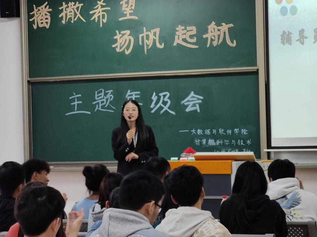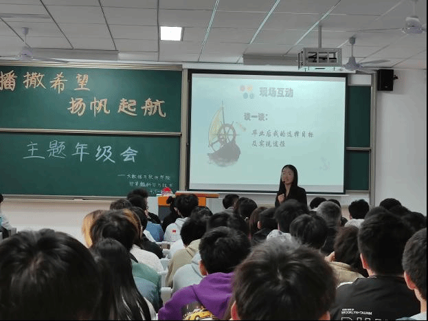 金秋时节,桂花飘香,计算机科学与技术专业1-8班全体学生参加了一场别开生面的主题年级会。为了提升同学们对本专业考研与就业前景的认识,尽快确立奋斗目标,辅导员谢沅红老师特意将主题定为“播撒希望,扬帆起航”,指导学生尽早明确发展方向与目标。