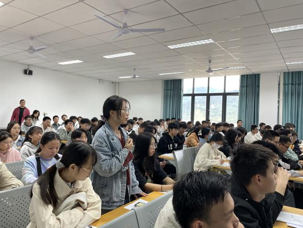 为了让同学们更加深刻地感受到所学专业的发展前景,谢沅红老师特意找了学院老师、往届学长学姐、本专业校外人士等精心录制了原创视频《一些想对你们说的话》。随着视频的播放,此次主题年级会正式开始。同学们激情高昂,看完视频后积极踊跃地举手发言,跟大家分享自己的大学目标与人生理想。