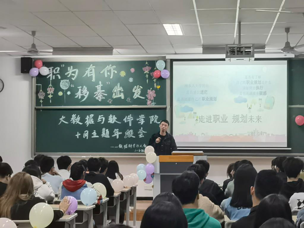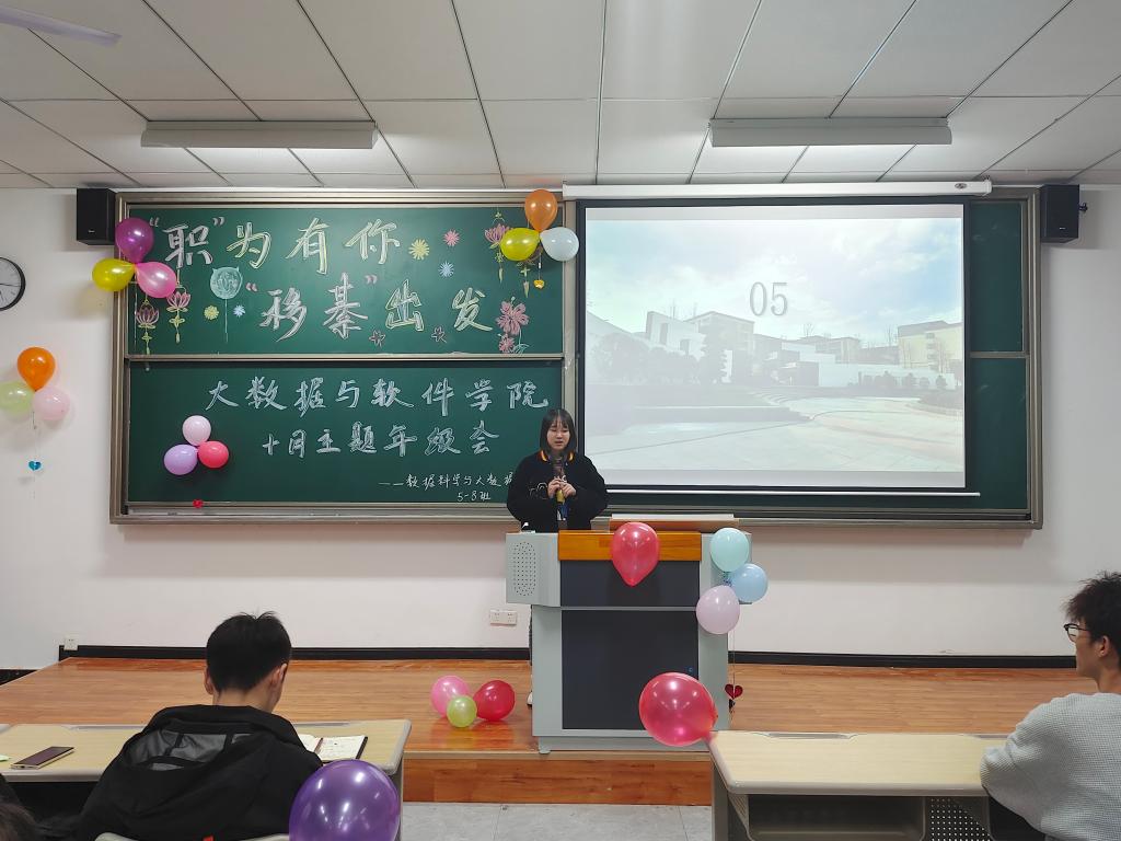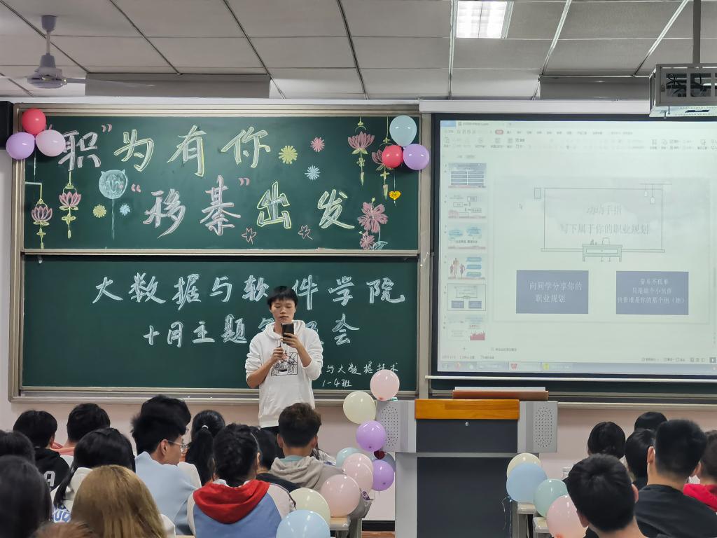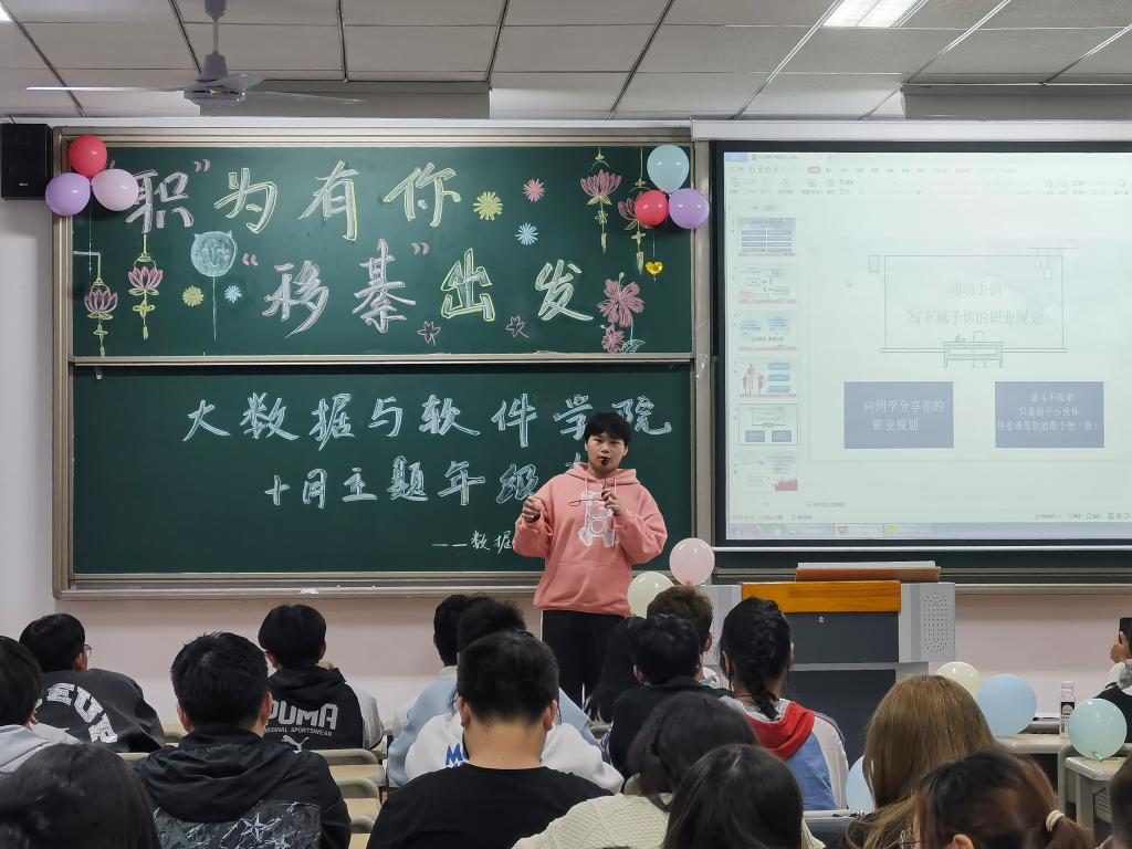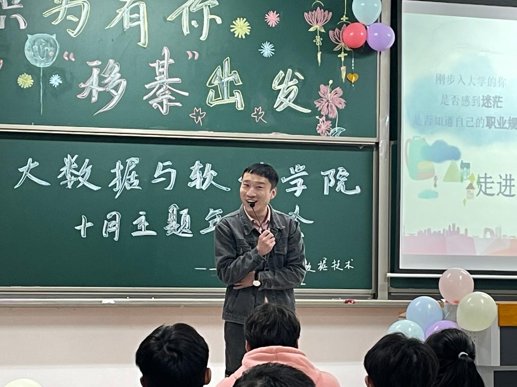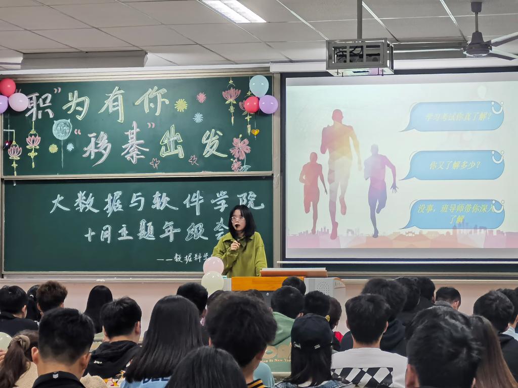 为了帮助同学们尽快转变角色,找到大学生的定位,及早融入校园生活,加快适应学校教育教学节奏,提前树立职业规划意识,为未来的完满人生下好“先行棋”,铺好“垫脚石”。2021年10月24日、25日,大数据与软件学院2021级数据科学与大数据技术专业270余名学生紧盯大学生活、职业生涯规划为目标,围绕“‘职’为有你·‘移’‘綦’出发”的主题,在勇者楼402教室迎来了新生进入大学校园以来的首场年级会。