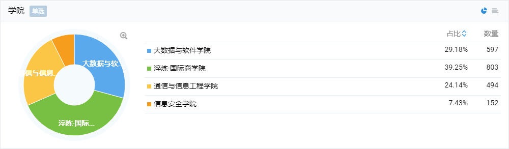 结合綦江校区实际,校级学生组织招新全面采用线上报名、线下咨询的形式。现场工作人员在各部门咨询点耐心详细的为每一个新生介绍部门职能、讲解部门特色。即使小雨淅沥也阻挡不住学生的热情和向往,为期两天的招新,团委和学生会两大校级学生组织十二个下设部门共收到了来自四个学院的2046份报名表。透过这个数据,我们可以非常直观、清晰的看出同学们对于集体的渴望、完满教育的向往,数据背后体现的新生力量更是为綦江校区学生组织、特色团队成长和发展注入了一个强心剂。