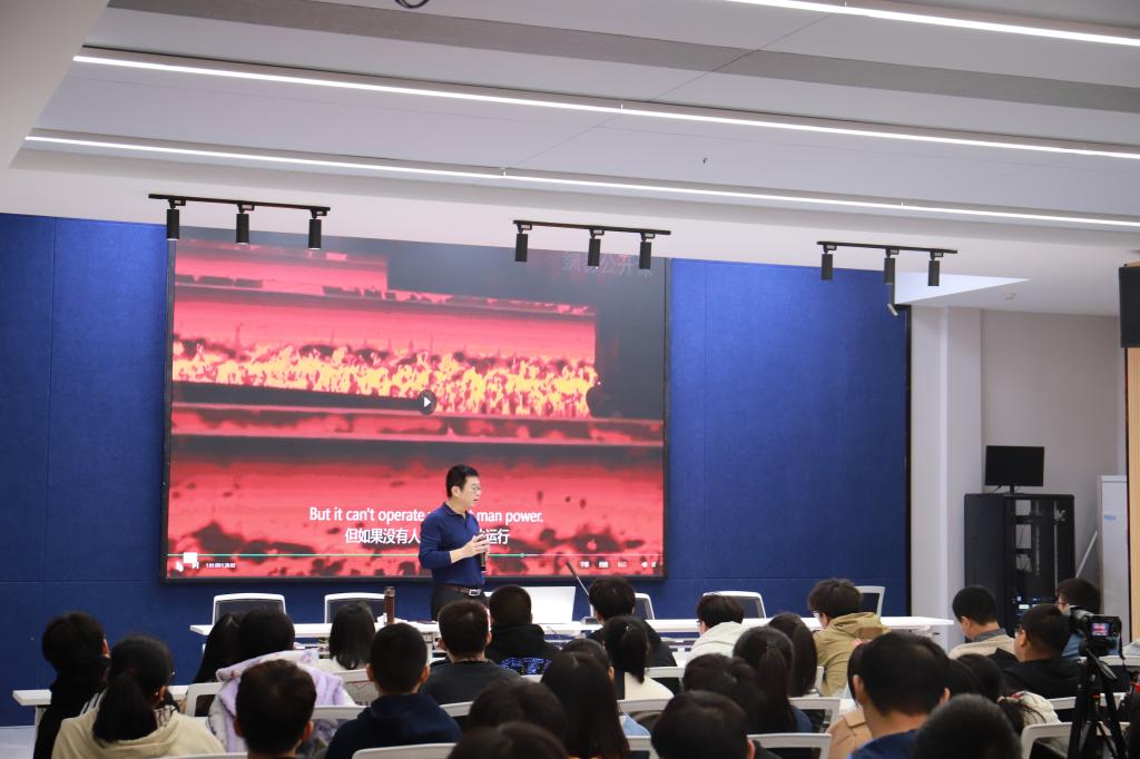 刘伟教授向大一新生们介绍了个人的履历和学术背景,在讲到被国家选派到英国UMIST大学学习和参与歼十战斗机的设计经历时,引得在场师生连连赞叹。刘伟教授在分享留学经历时讲到,“需求不是满足出来的,而是创造出来的。”这句话对他之后的学习和工作影响颇深,也让在场的同学们开始思考“创新、创造”的关系与重要性。每时每刻全球的科技都在发生的巨大的变化,大学生就应当具有全球视野,刘教授鼓励同学一定要走出课堂、走出重庆、走出中国,多去看看外面的世界正在发生的和将要发生的事情。不要每天只在课堂里、课本中。