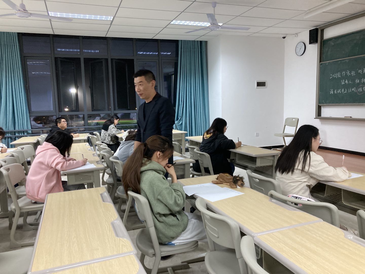 这是一场特殊的笔试,创意写作学院綦江校区的10名教师全线参加了这次监考工作,考试从七点到八点半,在仁者楼3楼301至309教室进行。