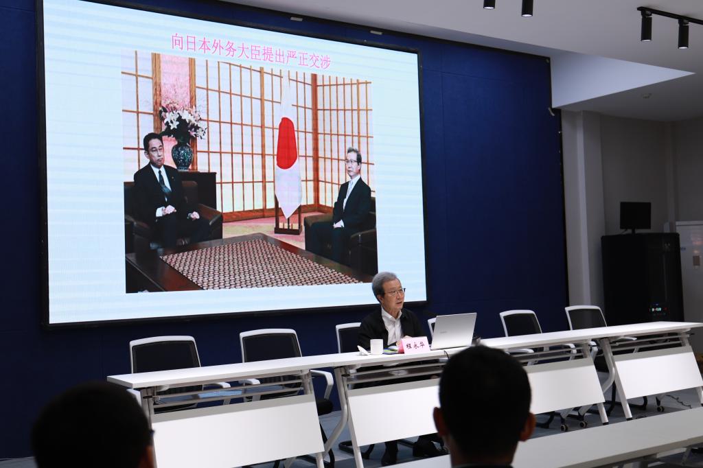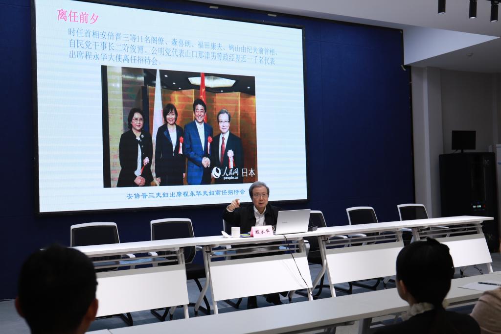在讲座过程中,程永华先生结合自己2010年至2019年期间担任驻日大使的经历,以四个词语“波澜起伏”、“迂回曲折”、“爬坡上坎”、“重回正轨”归纳概括9年间中日关系的复杂变化。程永华先生表示中日关系是促进两国发展的重要一环,两国自古以来长期进行文化、经济交流,早已形成密不可分的合作关系。他强调,发展中日关系,以民促官是加深中日合作交流的重要举措,除此之外也可以通过多渠道做中日交流转化工作。