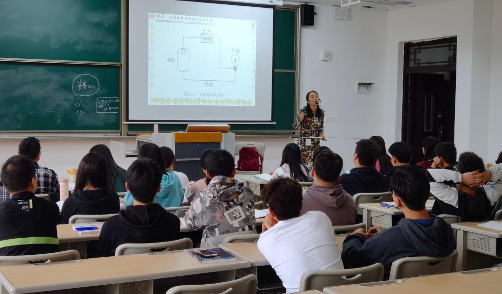 袁林老师在《电路分析基础》课程的第一堂课程中,利用自己丰富的项目经验将学生带入“电路”的世界。详细讲解教室里,电路的走线和布局,怎样设计更合理的电路,将工程应用与理论结合,让枯燥的电路知识更形象,激发学生兴趣,调动学生的自主学习性,为后续教学做好铺垫。