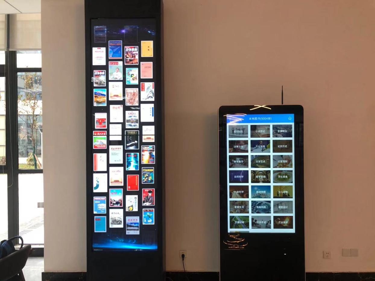 图书馆一楼设置了数字资源体验区,含馆藏纸质图书查询机、电子图书借阅机、电子书瀑布流等产品,期待着你来发现。