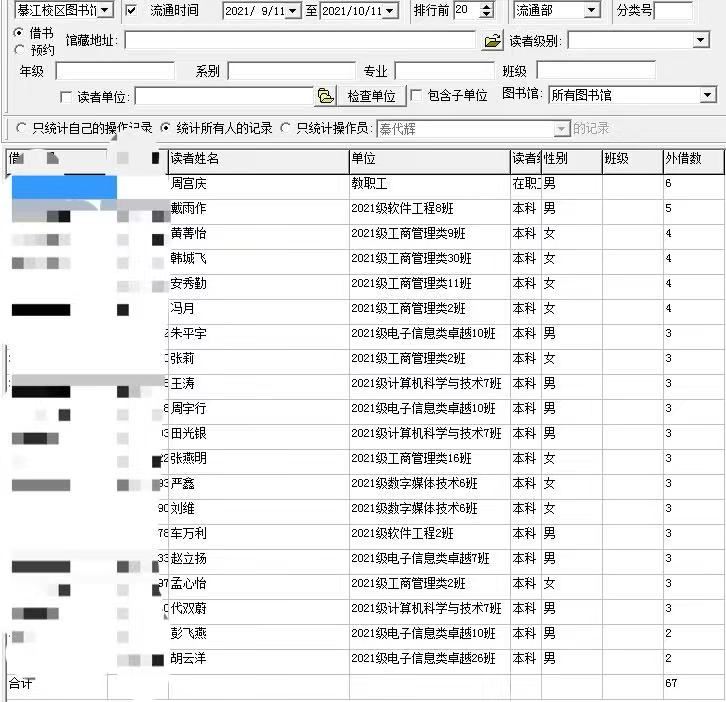 悄悄说一下,其实有很多同学已经发现了图书馆可以借书的密码了,截至目前,图书馆借阅量排名前20的读者如下,你上榜了吗?