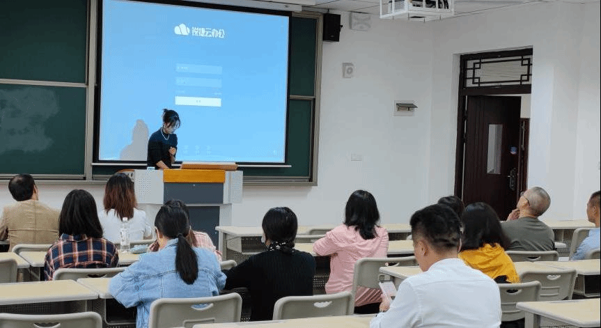 10.10日下午14:30在仁者楼307对教职工进行了云办公、云桌面操作使用的培训工作。我校副校长、綦江校区管委会副主任孙玺、教务处、网络与信息管理中心、实训中心及各二级院系教师参加本次培训会。此次培训工作由网络与管理中心崔向灵老师为主讲人。培训会涉及四个方面的内容:包含云盘、云办公、云桌面使用方法;Web网络认证使用介绍;多媒体设备的操作使用方法;现场答疑。培训期间,老师们热情高涨,现场气氛非常活跃,效果显著。为强化老师们对云桌面多媒体设备的认知度,网络与信息管理中心专门制作云办公、云桌面多媒体设备操作手册,分发至教师群、打印粘贴至多媒体机柜,多种方式保障我校教学工作的顺利开展。