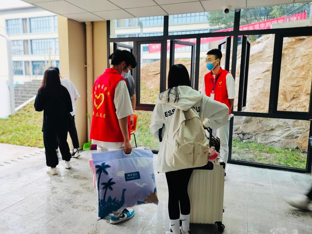 热情的志愿者们有的为新生引路,有的协助新生报道,有的协助新生搬运行李。两学院的全体迎新成员贴心细致的服务很快消除了新生初来乍到的陌生感。对于綦江校区的第一批新生的到来,老师和学生志愿者们都表示非常开心,希望能为新生提供更多周到的服务。