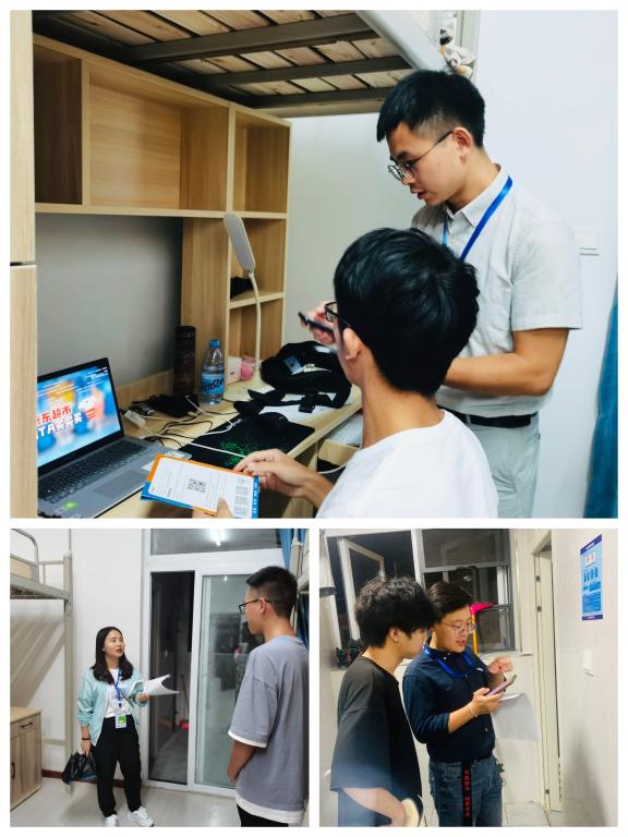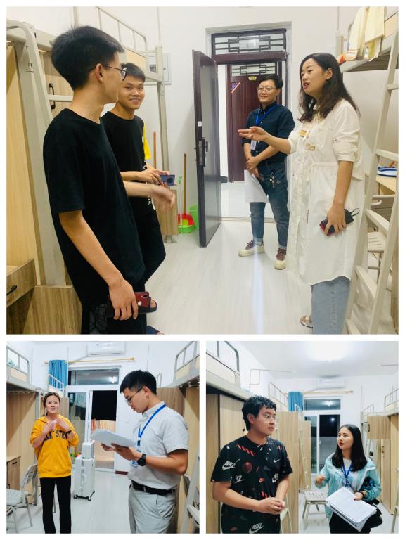 晚上8点半,两学院领导、辅导员老师去到綦河书院2号、3号楼宿舍了解新生入住情况,了解新生们对宿舍的适应程度,对新生嘘寒问暖,表示领导、辅导员老师们会随时为同学们排忧解难,有问题及时反馈沟通,尽快适应大学生活,融入通信|信安大家庭。