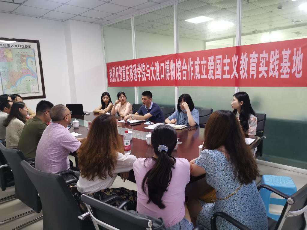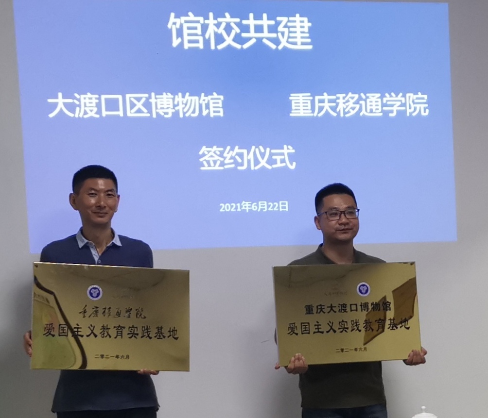 为充分拓展大学生爱国主义教育实践平台,深化馆校合作机制,促进博物馆资源融入课程体系,6月22日上午十点,我校与大渡口博物馆合作成立爱国主义实践教育基地签约及授牌仪式,在大渡口博物馆举行。大渡口博物馆馆长李国洪携部分员工、我校思政教学部政治理论教研室主任李阳、教学团队带头人邹建平及20余位师生代表一同出席仪式。