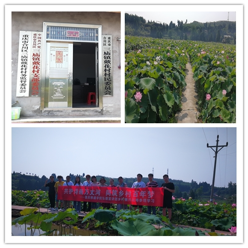 一路上,同学们的情绪如天气一样热烈。到了戴花村,村委会秦主任热情地接待了大家,并带领师生们参观了莲花基地。秦主任介绍到,莲子是戴花村目前主要收益来源,莲花基地的面积有一百多亩,仅承包费每年就要8万余元。有同学很疑惑,生产出的这么多莲子能销售完吗?秦主任笑了笑:“我们的莲子质量很好,每年都供不应求,接下来还会扩大生产,跟周围几个村联动起来,形成产业链。”在参观莲花基地的同时,大家注意到了旁边有蔬菜大棚,秦主任告诉大家,村里还有70多亩的蔬菜基地,种的是西红柿、丝瓜、辣椒等,最近两年暑假,常有合川高校的学生来这里进行“三下乡”实践活动,跟村民同吃同住同劳动。