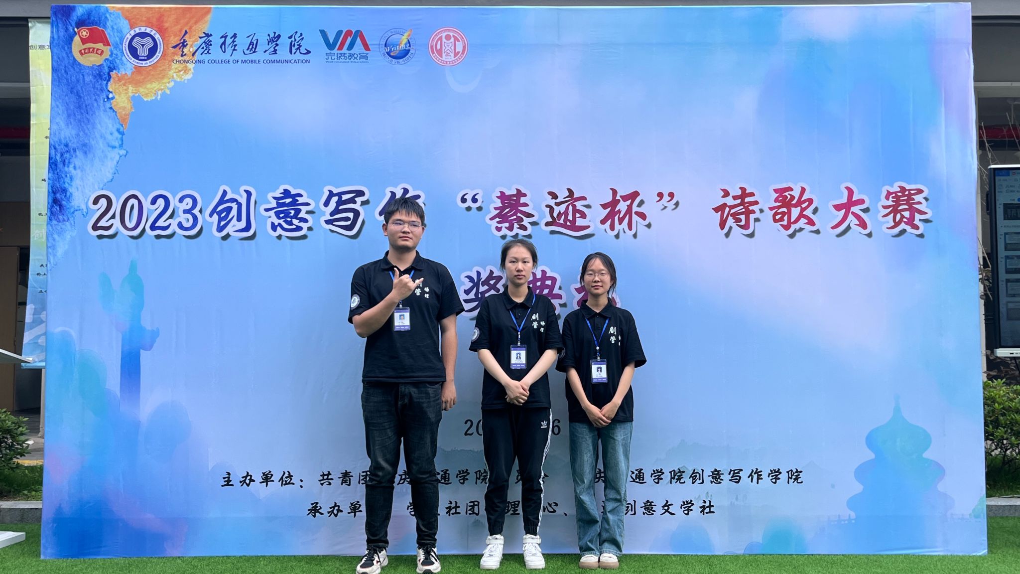 所谓沉淀,4月26日,“2023创意写作“綦迹杯”诗歌大赛颁奖典礼”终于开始了,熟悉的地点,熟悉的人。团队在旁观察现场,与活动方交流提问,做好活动准备,诗意盎然,剧管团队也正是在这样一场场活动成长起来。