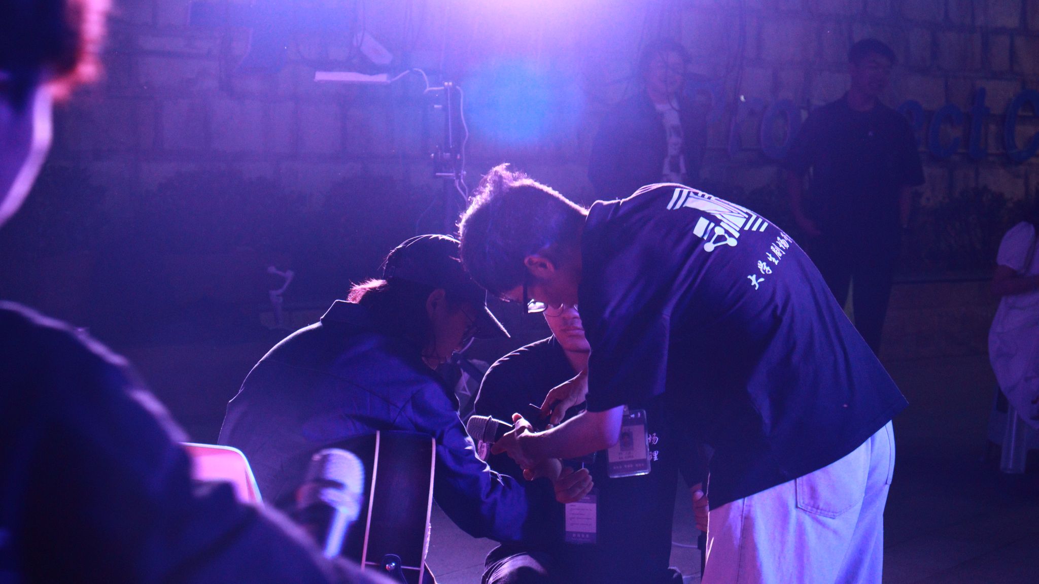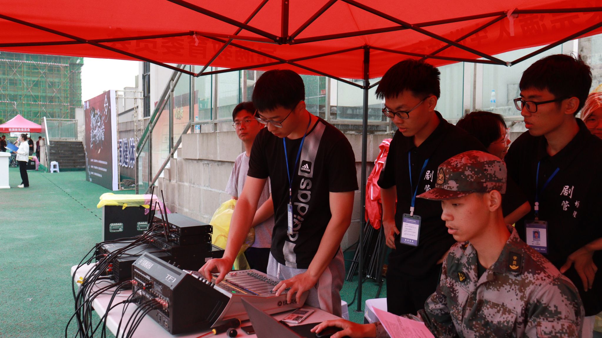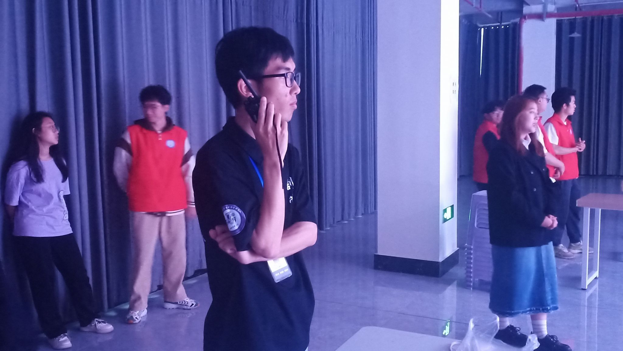 所谓无私,4月8日,团队在运动场和学生活动中心舞台同时协助“大数据学院新生体质健康运动会”和“青马工程淬炼实践课程”两场活动。周末期间,也要随时待命准备。成员们到达值班地点,和老师同学进行沟通,不放过任何一个活动细节。专业是剧管团队的标签,让他人放心,我们省心,不到活动结束不会掉以轻心。