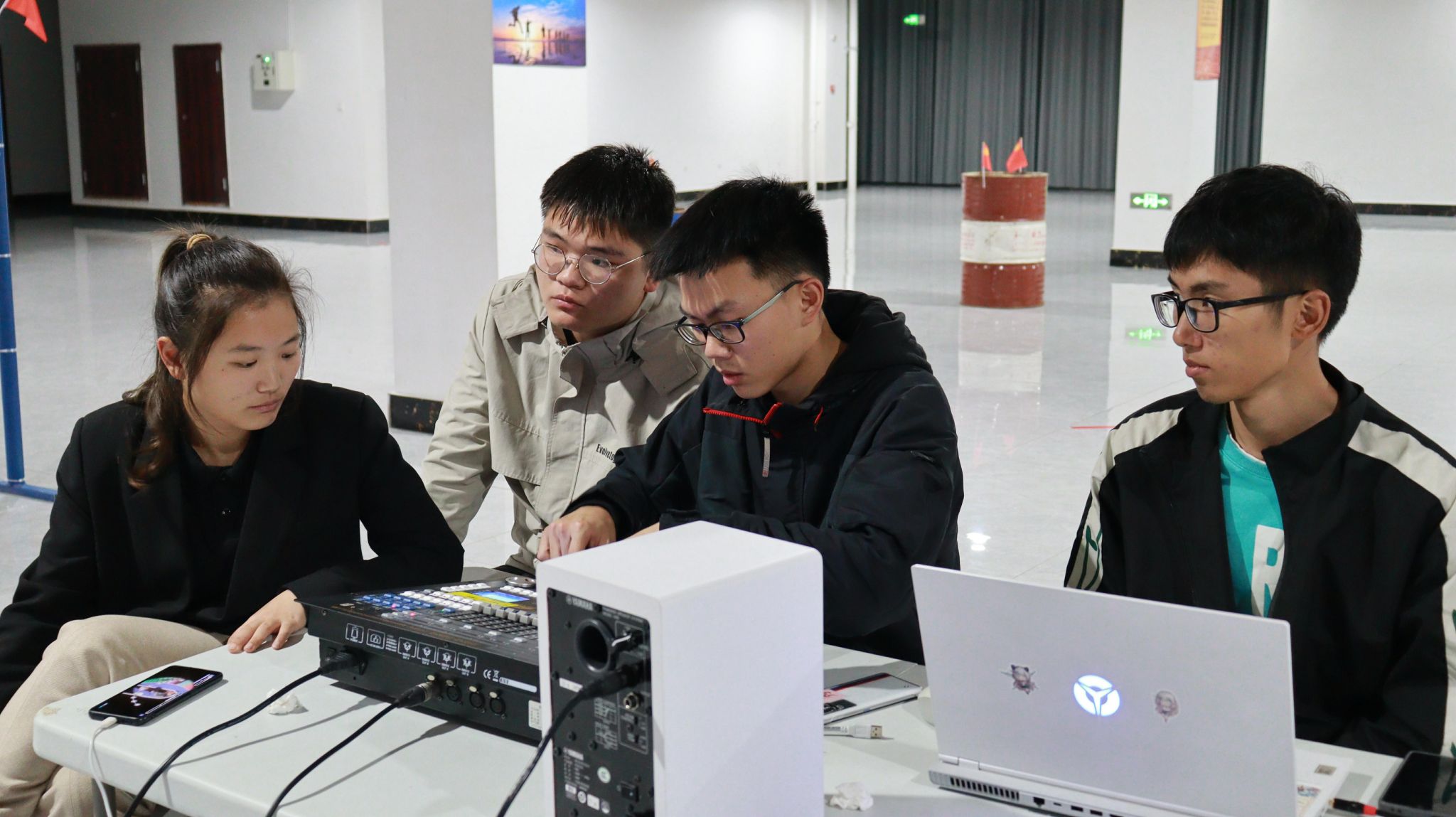 所谓疲惫,4月19日,今天注定是繁忙的一天。上午10:00开始进行重庆移通学院(綦江校区)第十五届春季田径运动会彩排。下午17:00,协助“书院围炉夜话”綦江校区第三期。晚上21:00,剧管团队临危受命,在食堂三楼进行“戏剧之夜节目审核”活动协助。在剧管团队心中,活动没有大小,都要全力以赴。调试数据、佩戴耳麦、对讲交流,展现的就是剧管团队的专业性和执行力。