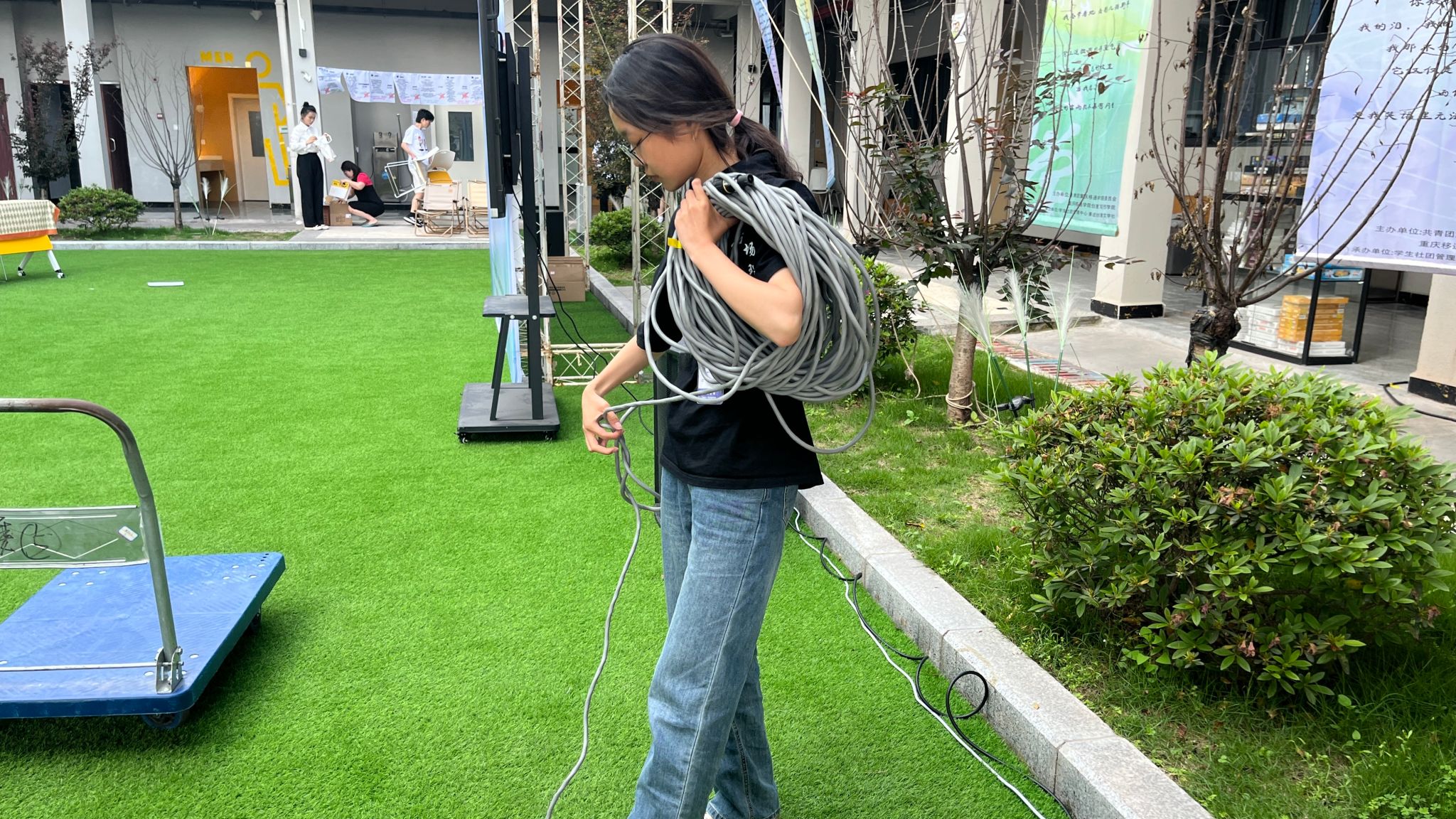 所谓日常,4月3日,历经了一天的活动彩排,在瀛溪书院中庭草坪上协助了 “缔造乌托邦”首届书院社区文化月闭幕式 。团队提前到达场地,进行设备安装、线路铺放、安全隐患排查,做好每个细节把控,打造良好活动环境。活动结束,迅速检查并收拾设备,不容懈怠。