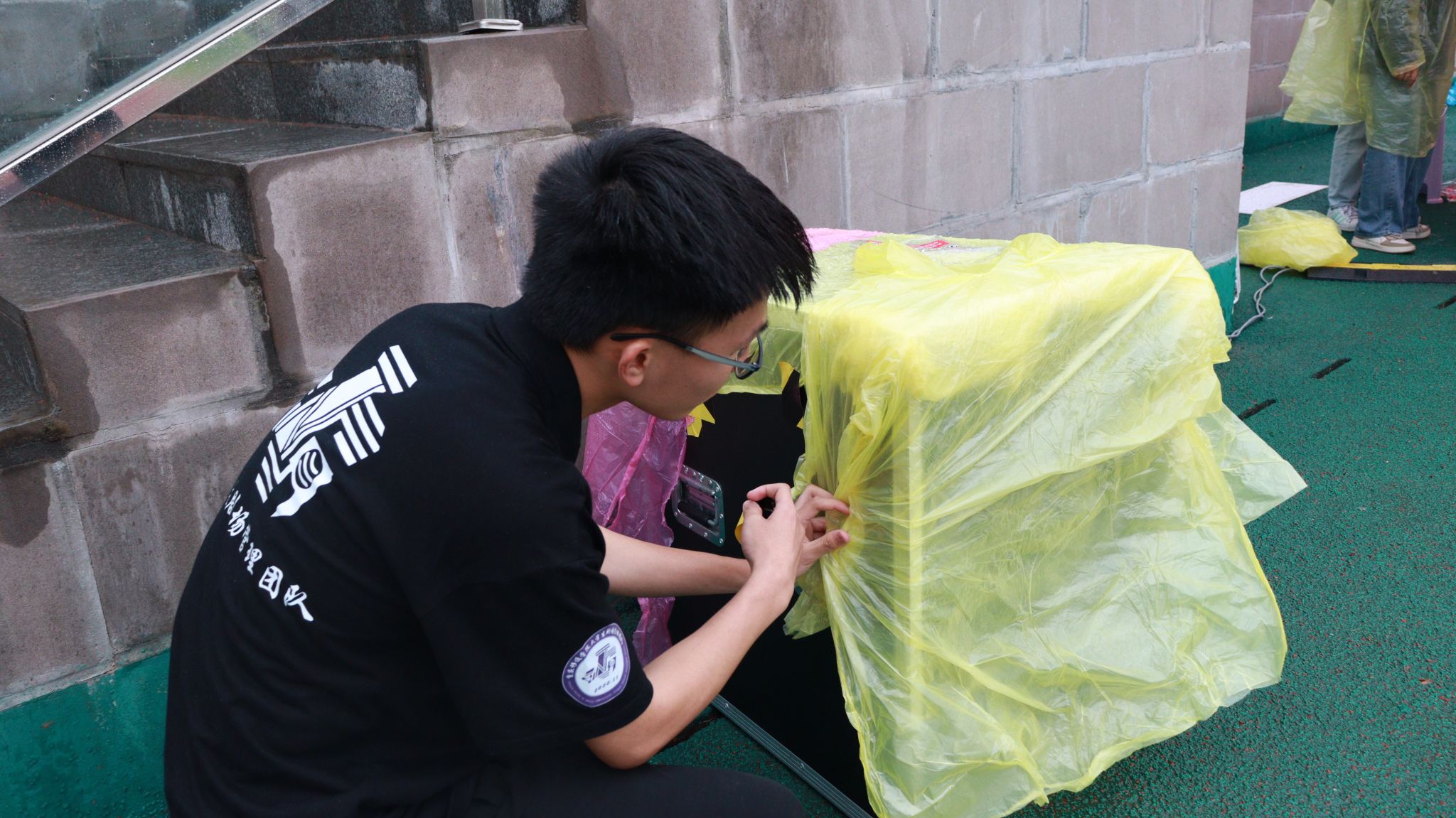 所谓无畏,4月22日,大雨倾盆。大学生剧场管理团队勇敢出击,早上8:00就在运动场开始协助“重庆移通学院首届斯巴达勇士特训营”。身披雨衣,穿梭在雨天,恶劣天气没有影响剧管团队的工作效率,为音响穿上雨衣并撑起帐篷,安全永远是第一,让每个参赛者放心。
