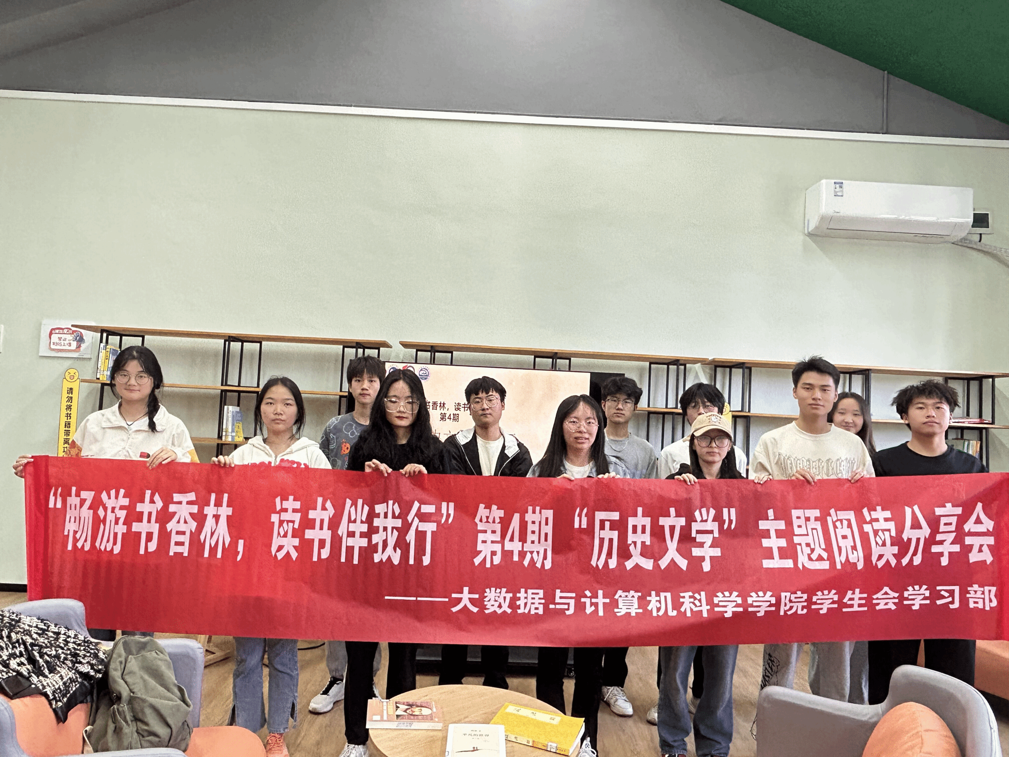 为了进一步丰富同学们的课余生活,开阔同学们的视野,提高同学们的阅读热情和文化素养,使同学们养成多读书、多思考、读好书、好读书的习惯,促进同学们的思想进步,全面发展。大数据与计算机科学学院学习部于4月26日16:30-17:30在横山书院悦君泽.交流室开展“畅游书香林,读书伴我行”——第4期“历史文学”主题阅读分享会,通过阅读历史文学,我们可以了解先人的智慧和经验,领略历史的风云变幻,品味文字的美妙。