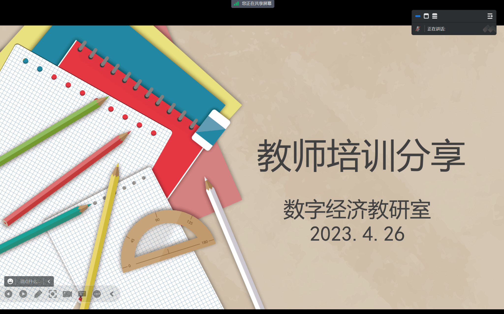 共享所学,分享所悟。数字经济教研室的工作仍任重道远,本次培训分享会议让教研室各位老师都感到收获颇丰,得到了教学与工作上的启发。