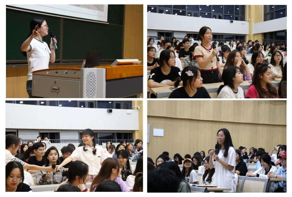 “善学风,立鸿志”主题年级会,张雄老师的年级会采用了室内+室外双结合模式。室外指定范围内散落着很多“学习”碎片,需要同学们前往各个“打卡点”寻找,并完成其中的学习任务。室内,现场同学们需要问答,为自己的队伍赢得碎片,最终拼接出善学风,立鸿志的学习主题。在王伟孪老师的年级会里,邀请了四位同学进⾏了学习和生活习惯认知的分享,带领大家“学三惯”即学习习惯、饮⻝习惯、卫⽣习惯,共同学习感悟和成长。谢沅红老师则是通过学习与运动结合,告诉大家要劳逸结合,释放学习工作压力,保持身体健康和身心健康,才能更好地投入到未来的工作中,创造出更多的价值。