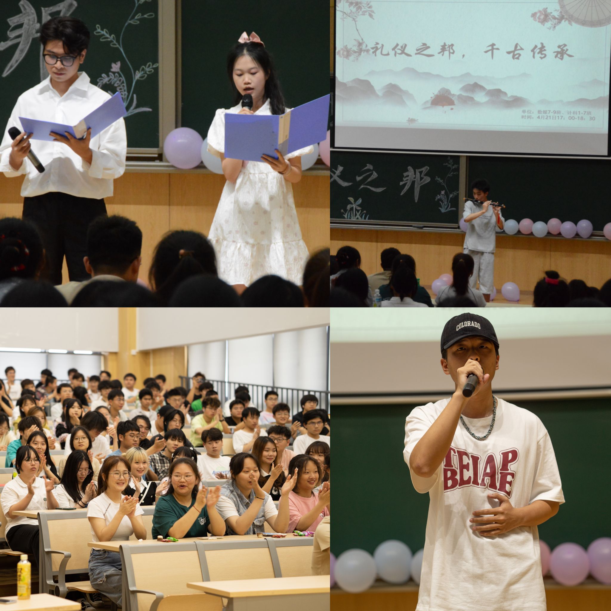 古人讲:礼者敬人也。“典籍辉照:古遇今、山河内外:中合西、知行合一:礼与我”蔡娜老师从典籍中寻找礼仪的源泉,到中西的文明中寻找差异,让同学们增强对中华文明礼仪的认同感、荣誉感和归属感,并号召同学们知行合一,把文明礼仪放在心中,践在实中。另一边,兰宇老师的年级会现场,萧萧竹笛,吟唱古往今来礼仪之传承;闯关初始,笛声悠扬,一缕缕笛声让人仿佛置身世外桃源,典雅的传统礼仪与沉浸式的体验相结合,让同学们切身感受到了中华文化,尤其是文明礼仪的风采。