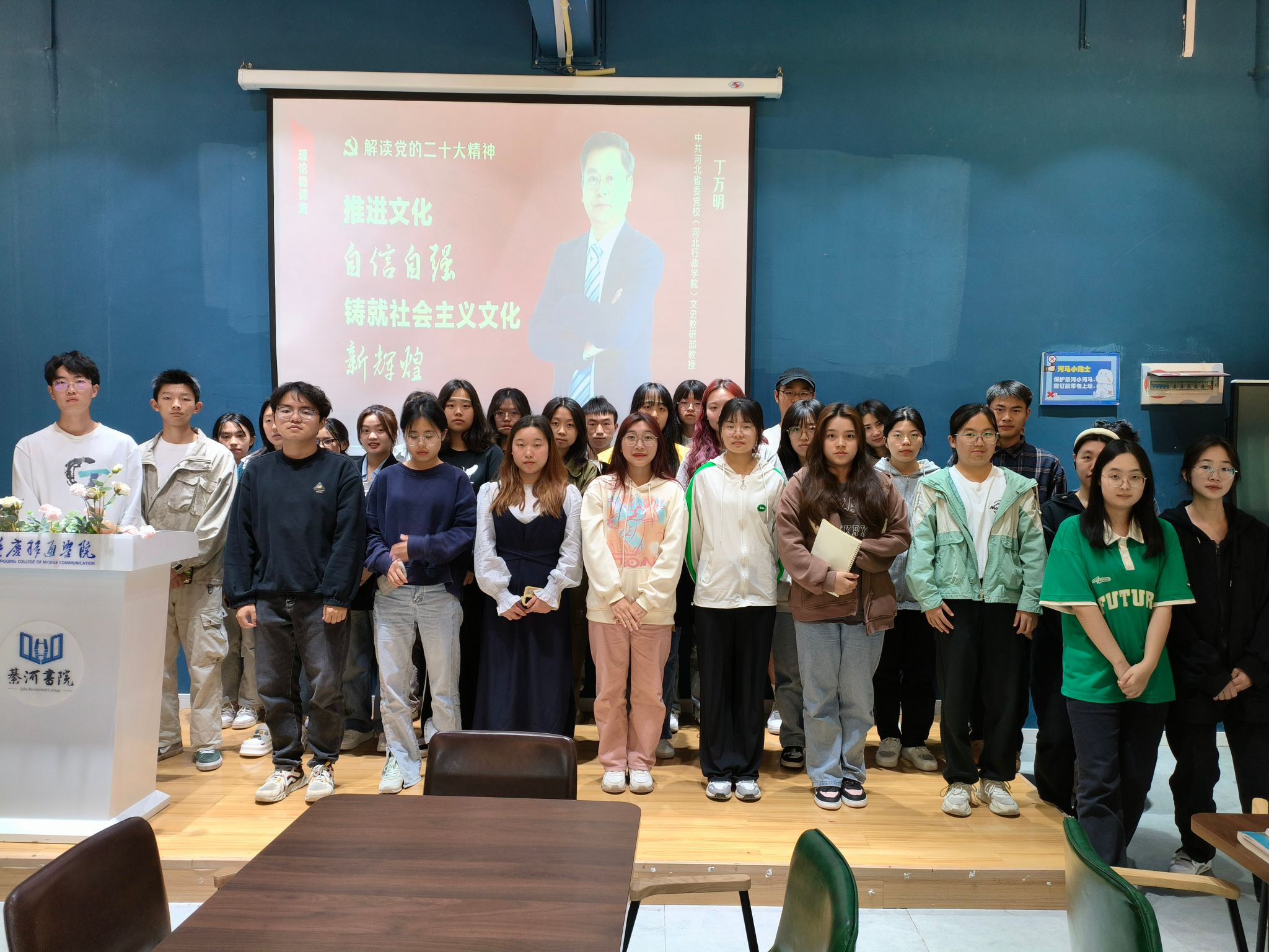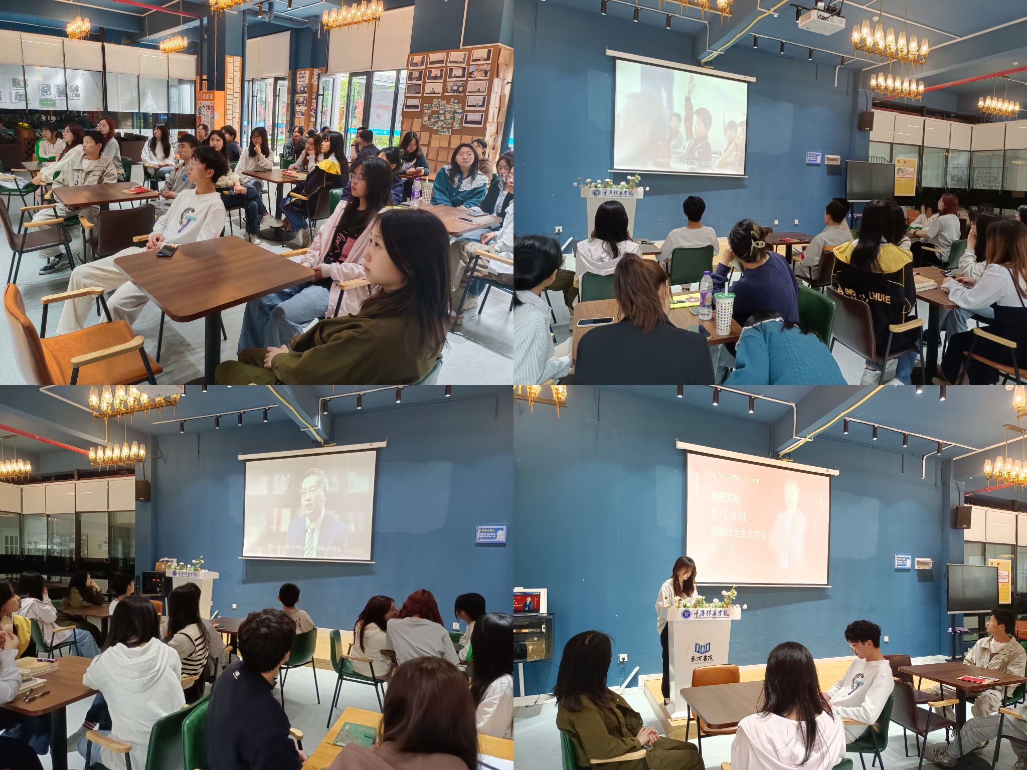党的二十大报告中提出,要“推进文化自信自强,铸就社会主义文化新辉煌”全面建设社会主义现代化国家,就必须坚持中国特色社会主义文化发展道路,增强文化自信。淬炼·国际商学院(綦江校区)第一期入党积极分子于4月25日12:50在故事茶馆开展“推进文化自信自强·铸造社会主义新辉煌”云党课活动。为进一步提升入党积极分子们积极向党组织靠拢的思想政治觉悟,本次集中学习活动由入党积极分子林心蕊同学带领大家对河北省委党校教授丁万明的教材进行学习和解读,围绕如何推进文化自信自强、激发全民族文化创新创造活力、走好中国特色社会主义文化发展道路、增强实现中华民族伟大复兴的精神力量进行讲解。
