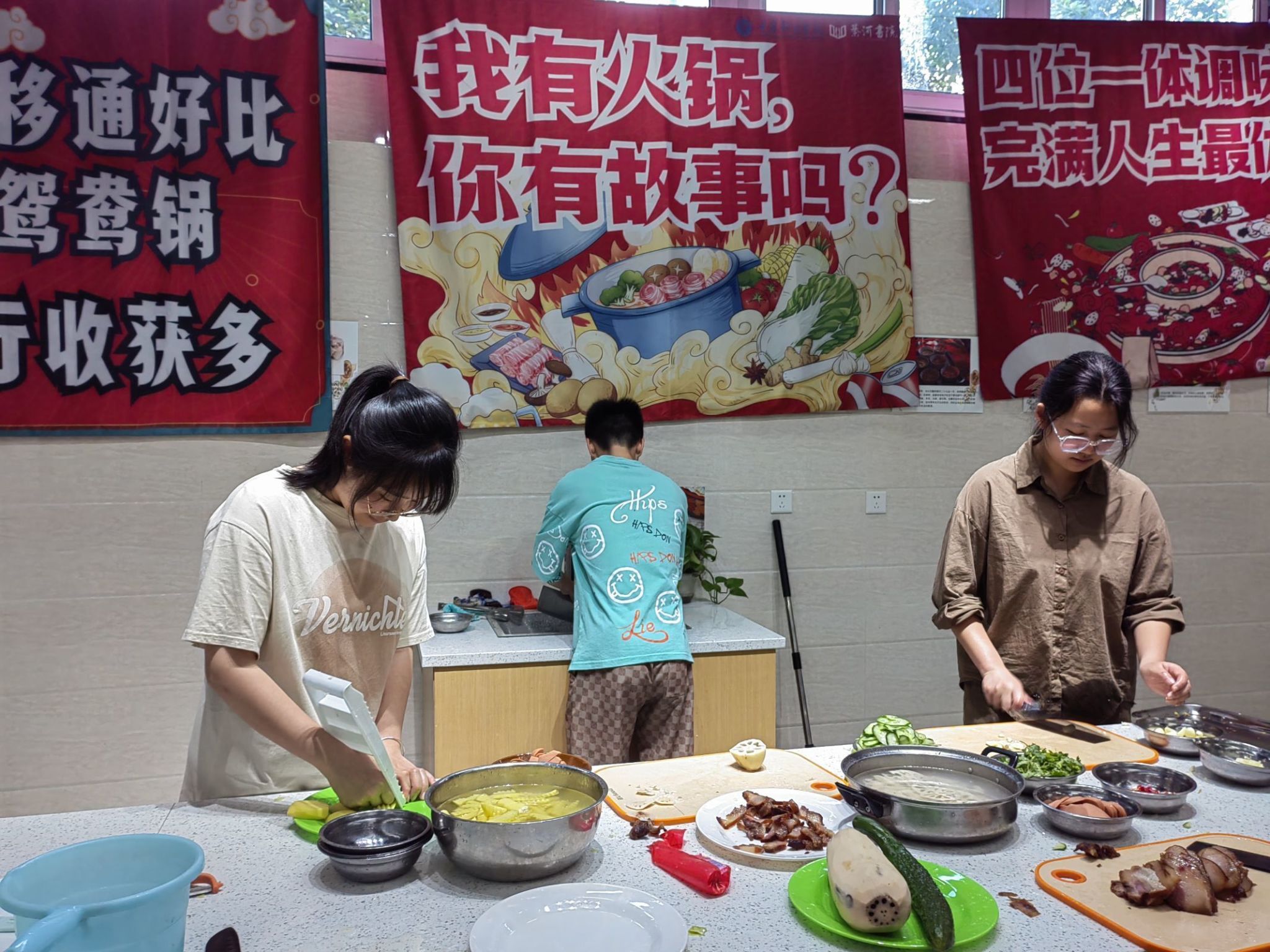 为提升学生的实践能力,培养学生的兴趣爱好,丰富学生的课余时间,在异科导师林红的带领下,大数据与计算机科学学院2022级计算机科学与技术专业3班的小组成员们在綦河书院二号楼共享厨房开展了制作美食的活动。