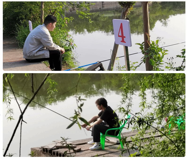来到垂钓中心,同学们分工协作,先在垂钓中心露营点布置好桌椅,略作休息。在两位异科导所带同学分别作了进一步的自我介绍,讨论好晚上的烧烤晚餐分工后,同学们分组自由活动。三三两两的同学们有的围着湖边散步赏花,放空心灵;有的同学拿起渔竿垂钓,不时还向旁边的老钓友询问经验;有的躺在露营点的吊床上,惬意的和旁边的同学聊着亚运会志愿者相关事项。