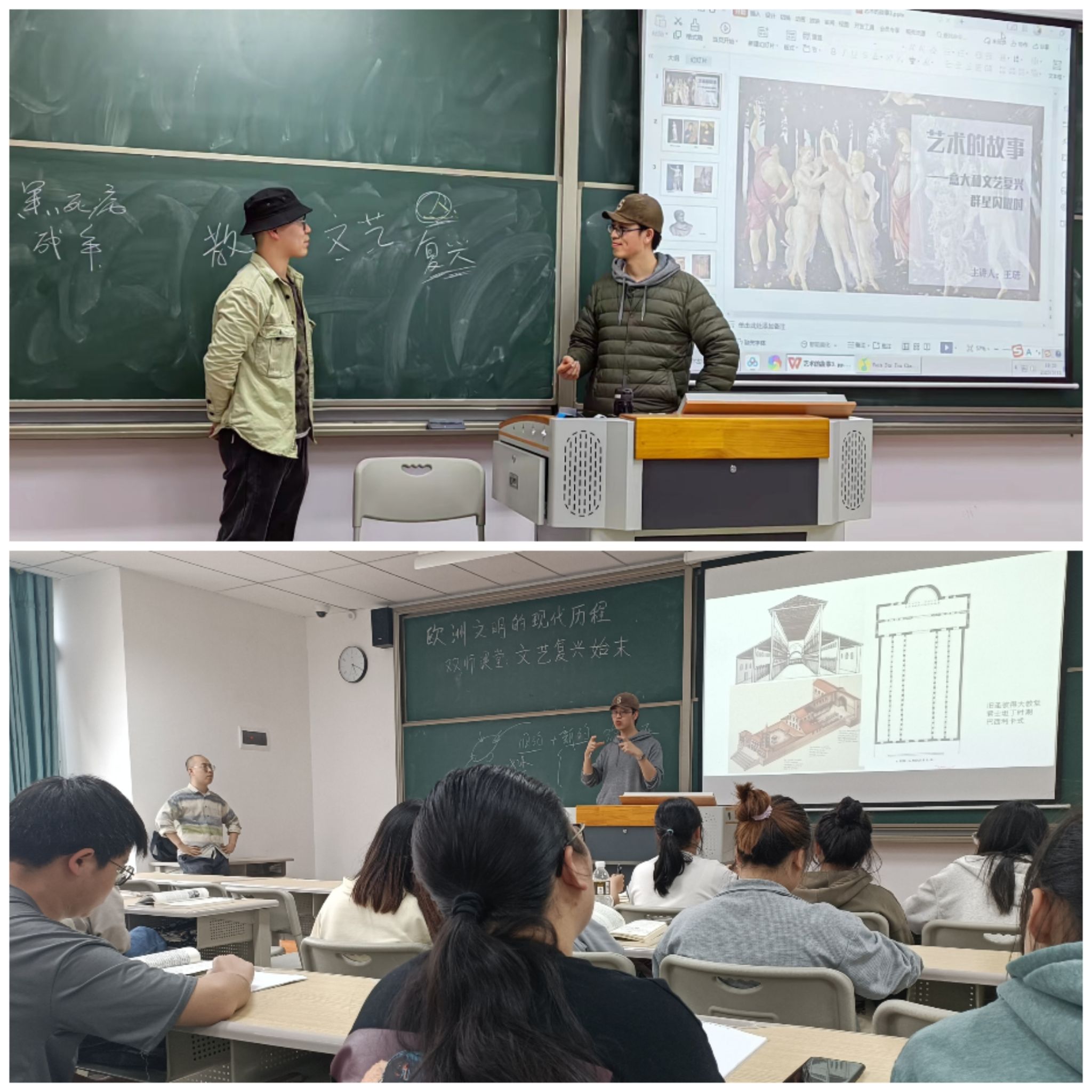 近日,在《欧洲文明的现代历程》和《艺术的故事》课上,一连串有关文艺复兴的问题被接连抛出,与以往略有不同的是,一堂课上,竟有两位教师的身影。