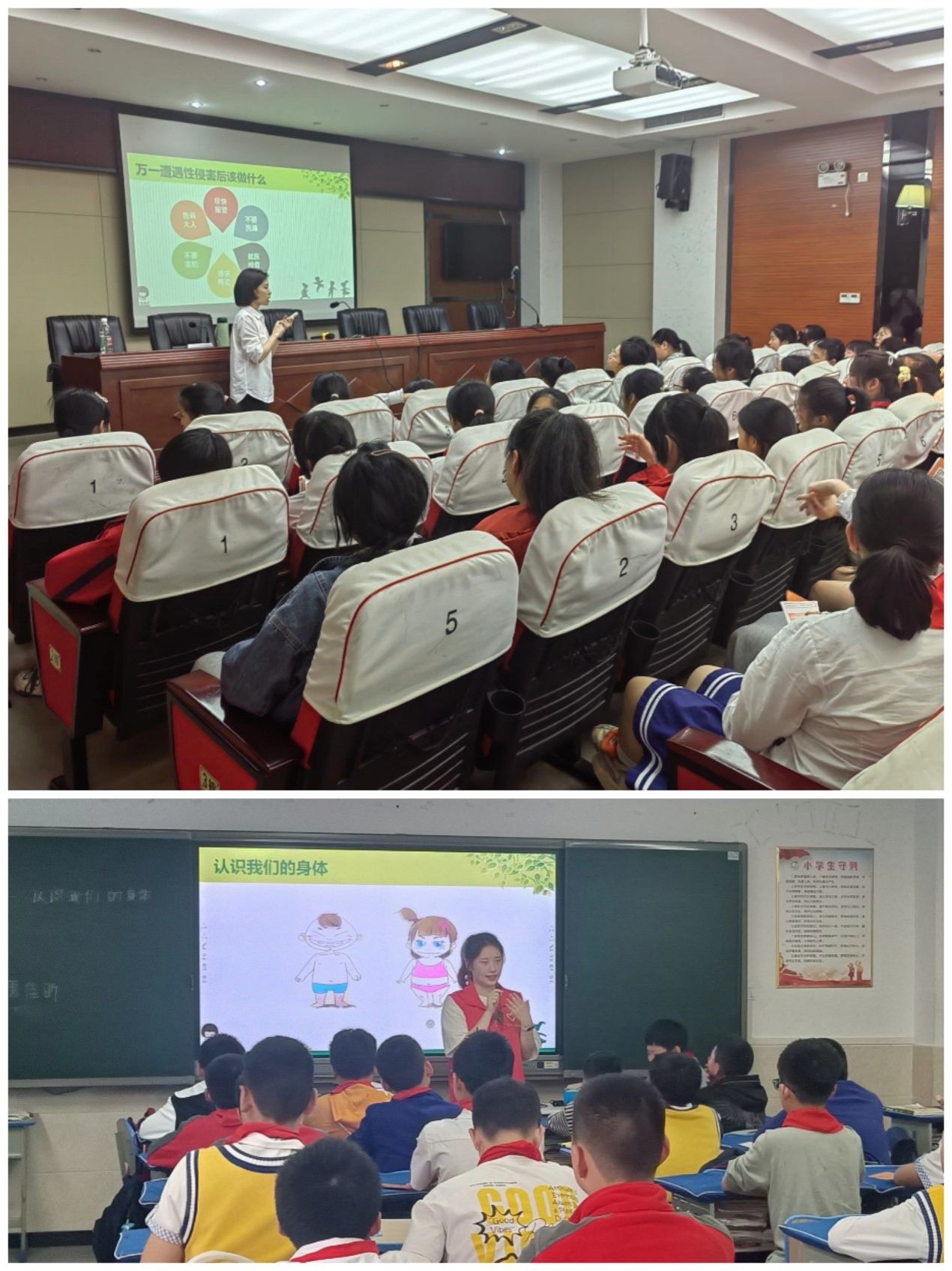 随后讲师们从“认识我们的身体”、“如何分辨和防范性侵害”、“遇到性侵害怎么办”、“万一遇到性侵害怎么做”四个方面举例进行讲解,孩子们都聚精会神,认真聆听。讲师通过先提问、再引导,最后总结每一条防范内容的方式让孩子们都参与其中。讲师和助教进行现场模拟,让同学们知道真的遇到侵害时应该怎么办。讲课的过程中同学们积极参与,回答问题也尽显童真童趣。这样一节不同寻常的安全教育课也给孩子们的健康成长道路多增加了一道安全屏障。
