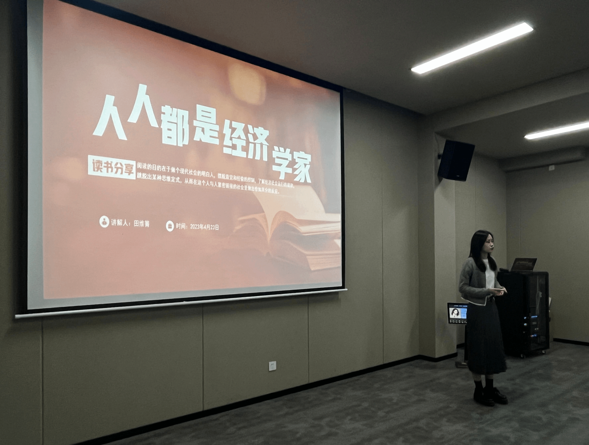 4月23日16时,为了引领书香校园,形成阅读氛围,响应世界读书日活动,校团委、创意写作学院、书院部、图书馆、远景学院、统战部联合主办的“重庆移通学院2023年第二届世界读书日书院师生伴读计划系列活动”,我校綦迹创意文学社联合远景学院田维菁老师在瀛溪书院潜台词影音室开展“新文科大讲堂”——《人人都是经济学家》读书分享会。目的在于让同学们学习经济学思维,学习经济学家看世界的方法,运用经济工具去分析经济问题,成为一个生活中实用派的经济学家。