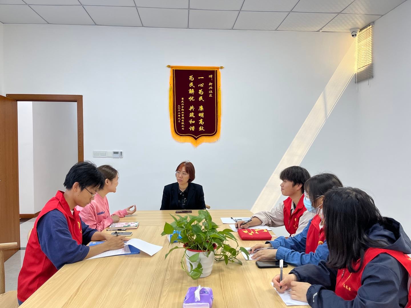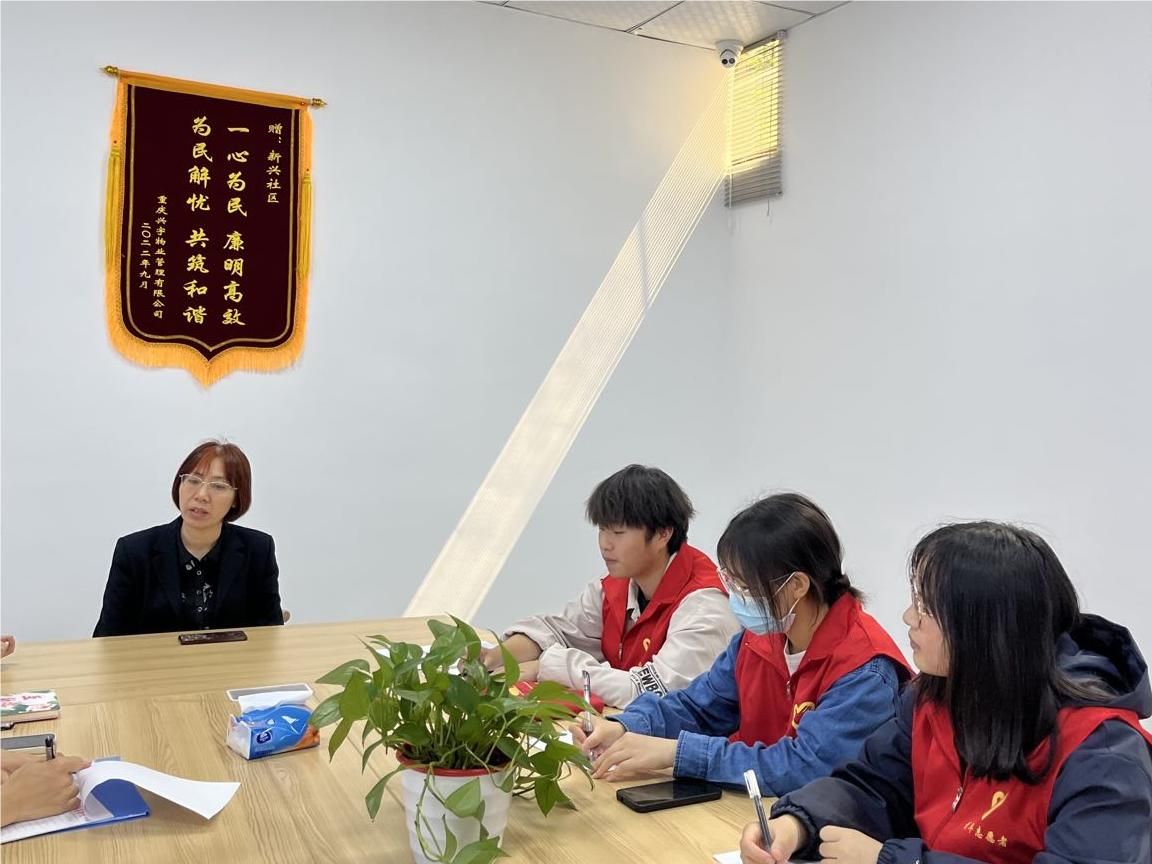王书记就新兴社区的志愿服务联动情况展开详细的分享,并邀请学院志愿者加入社区目前基层示范项目的推进和建设中,同时向志愿者一行介绍了新兴社区现有的关爱青少年儿童和空巢老人的相关活动,她希望我院学子能够发挥专业特长,贡献青年大学生的聪明才干,推动新兴社区志愿服务常态化、专业化和特色化。